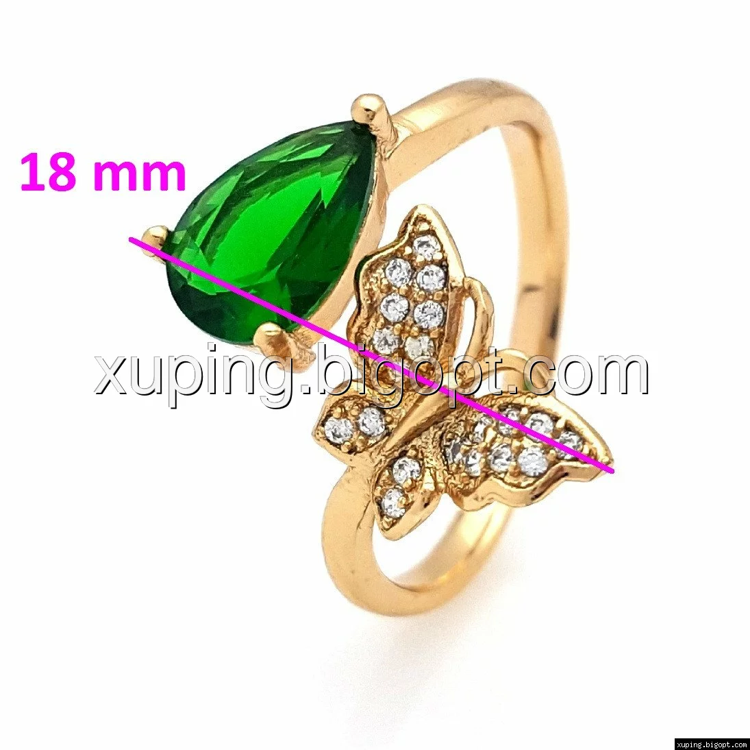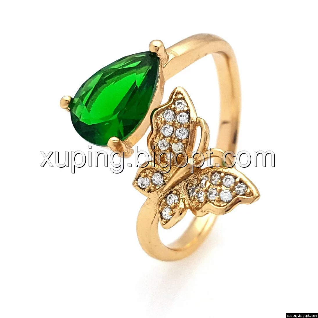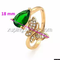 Кольцо Бабочка с Капелькой, вставка зеленый цирконий, р.16-17, р.18-19, позолота Xuping