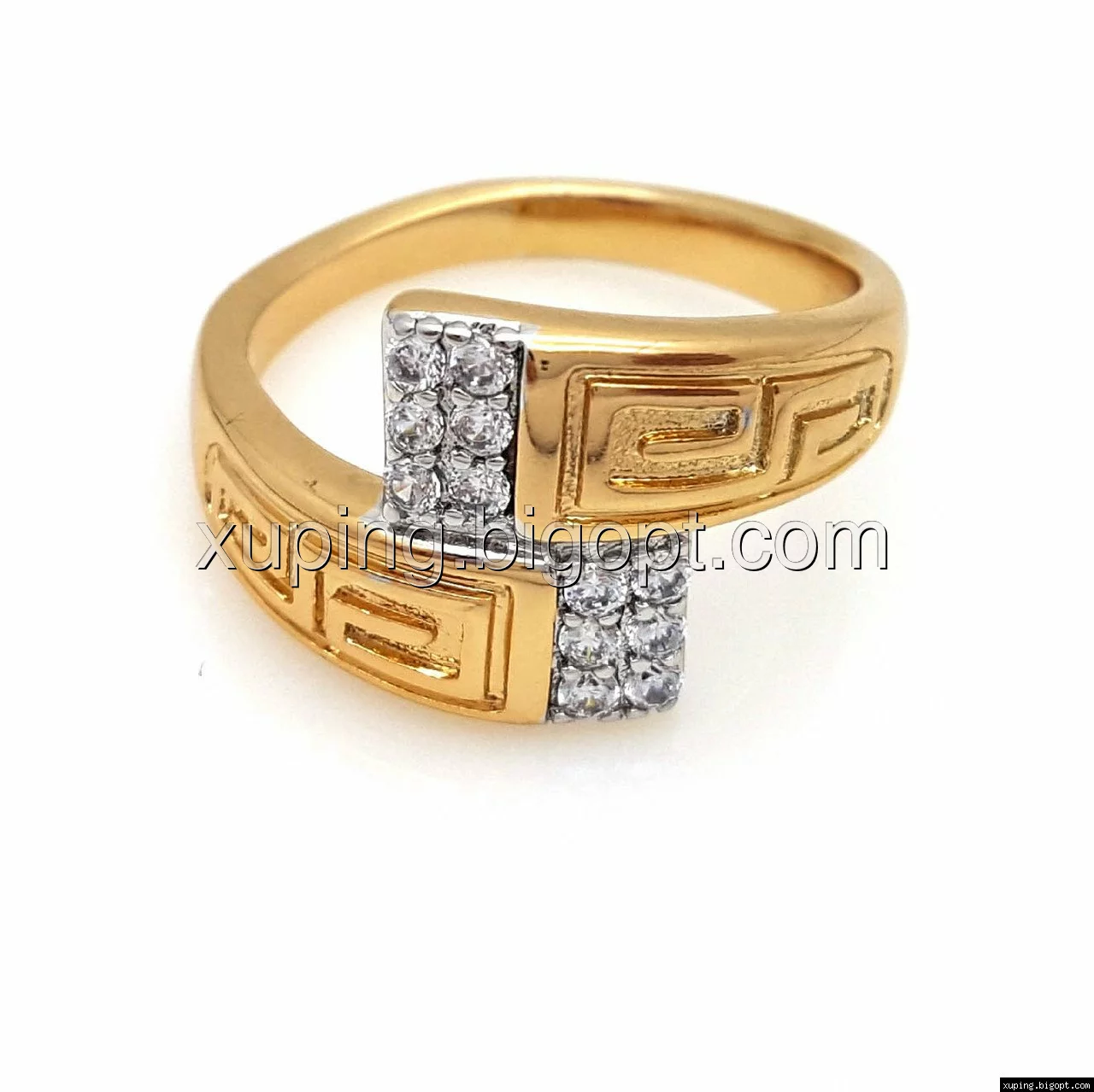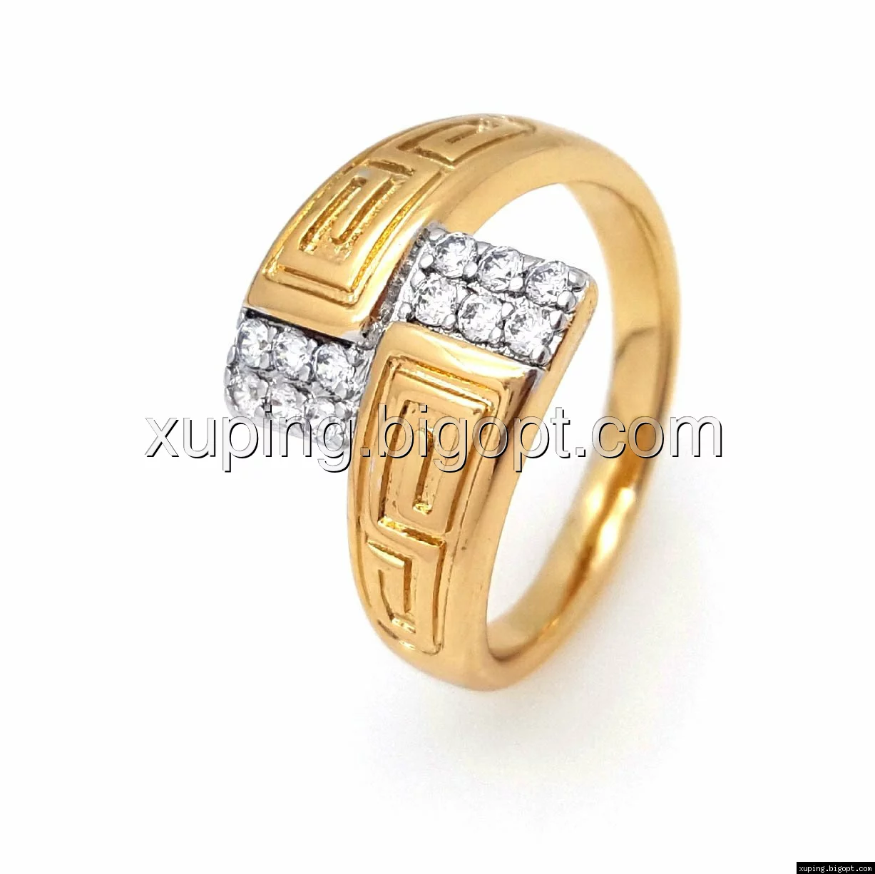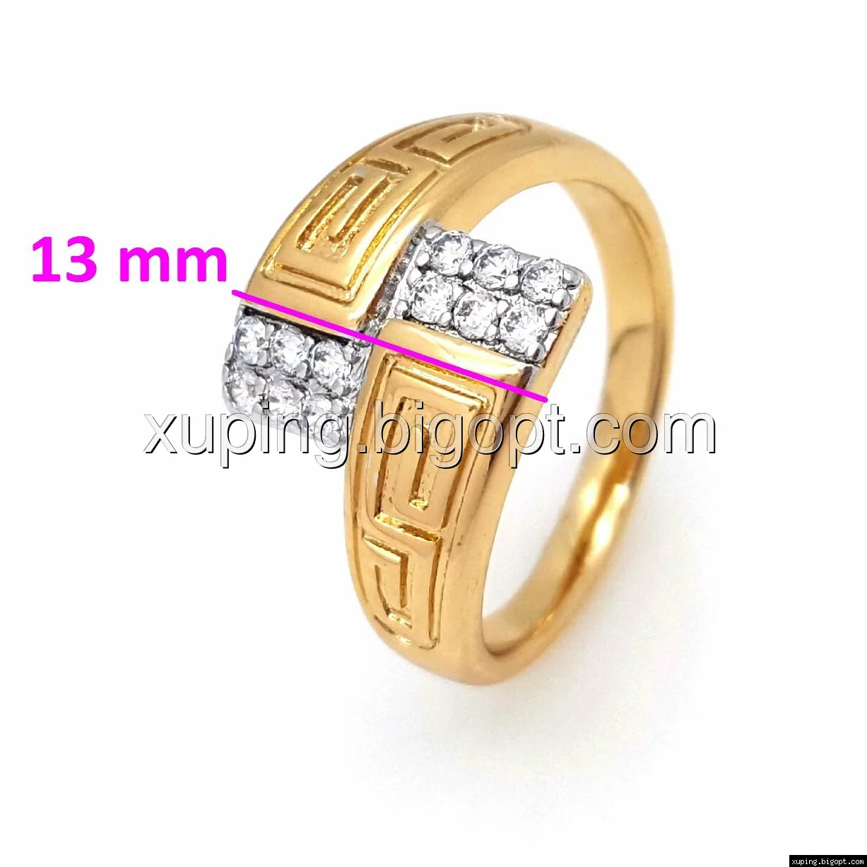 Кольцо Дорожка с греческим узором и камнями, р.17, р.18, р.18,5, р.19,5, позолота+родий