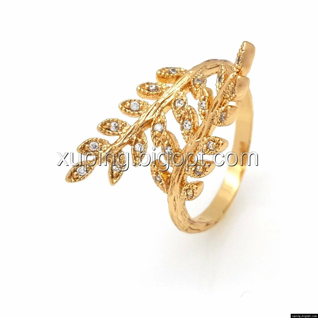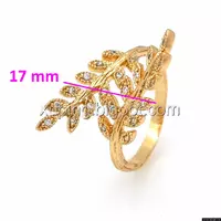 Кольцо Пальмовая Веточка, с цирконием, р.16,5, р.17,5, р.18, 5 позолота