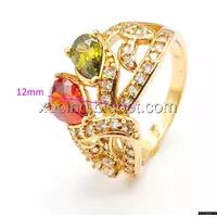 Кольцо позолота, разноцветный цирконий р.16,5, 17,5