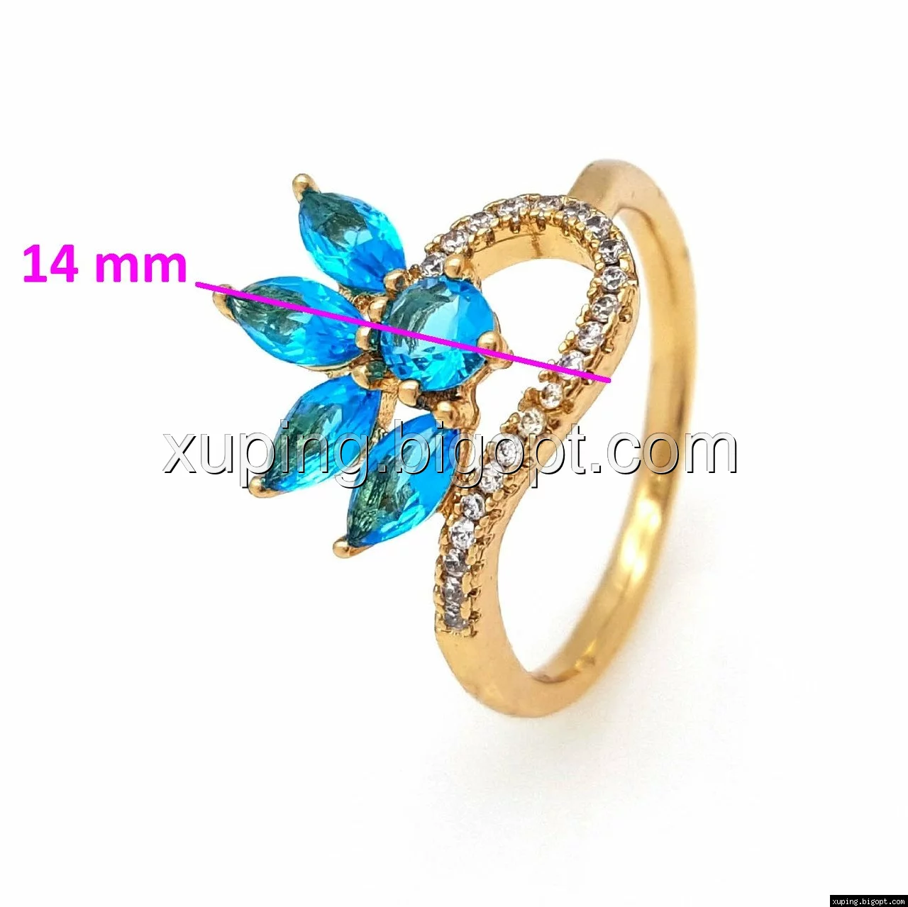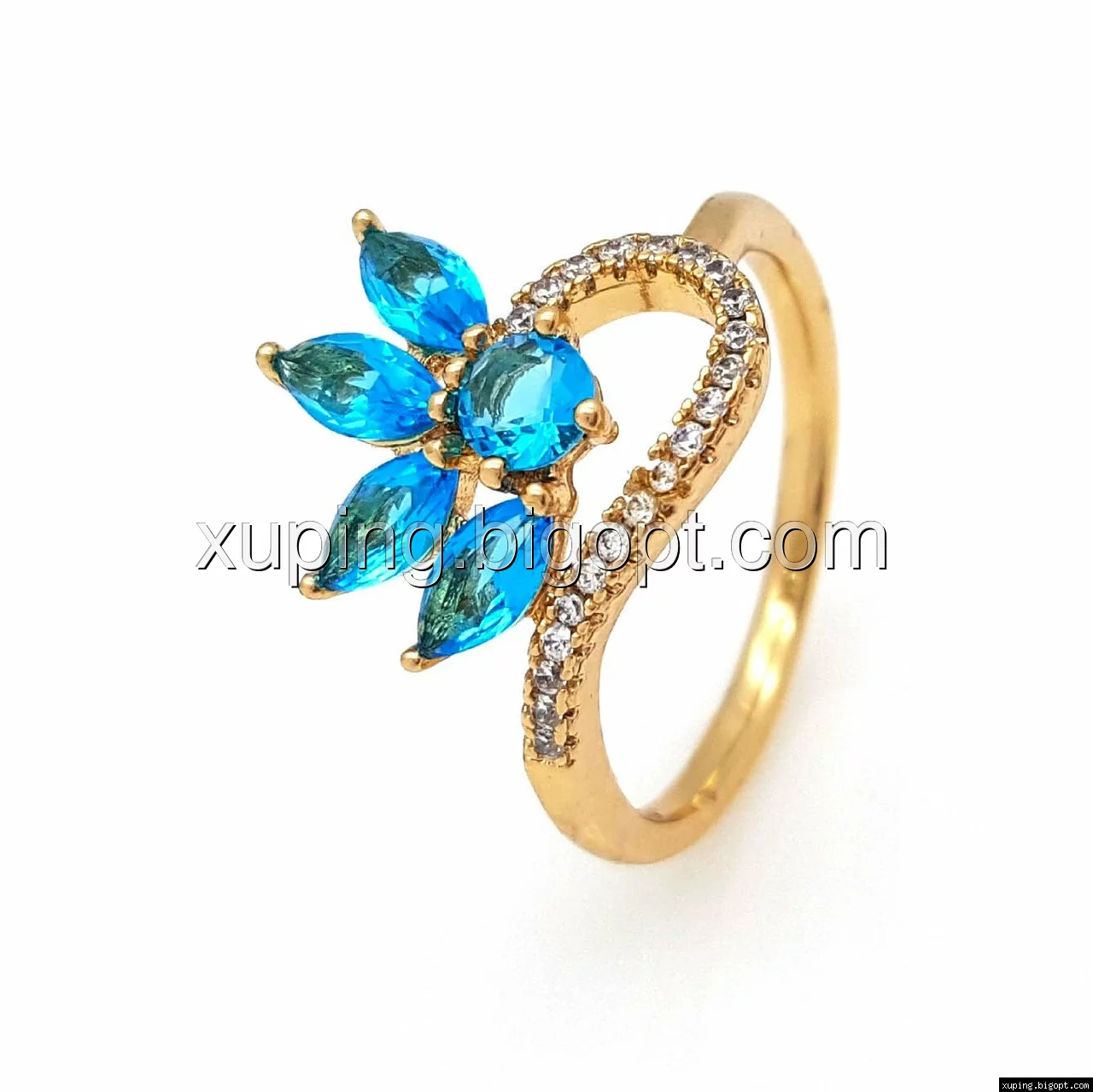 Кольцо позолота Xuping, Цветок с бирюзовым цирконием, р.17, р.18, р.19