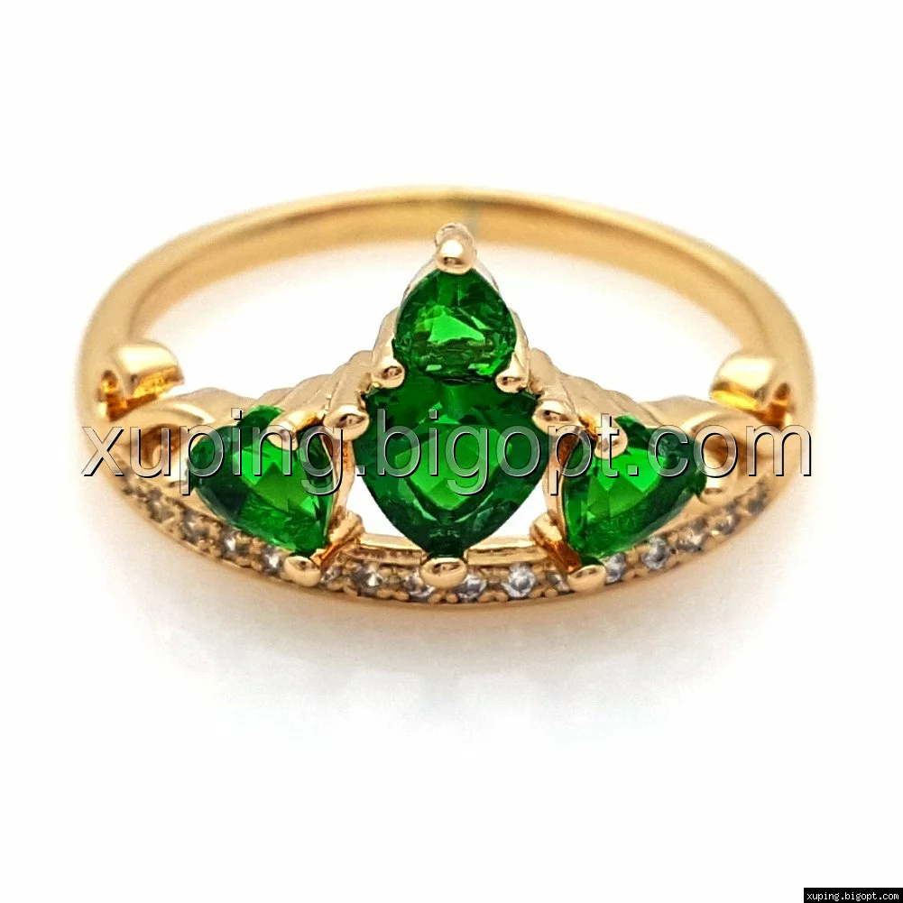 Кольцо позолоченное, Корона с зелеными камнями, р.17, р.18, р.18,5, р.20, р.20,5