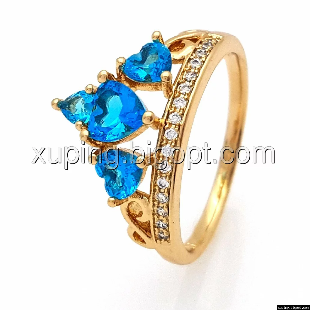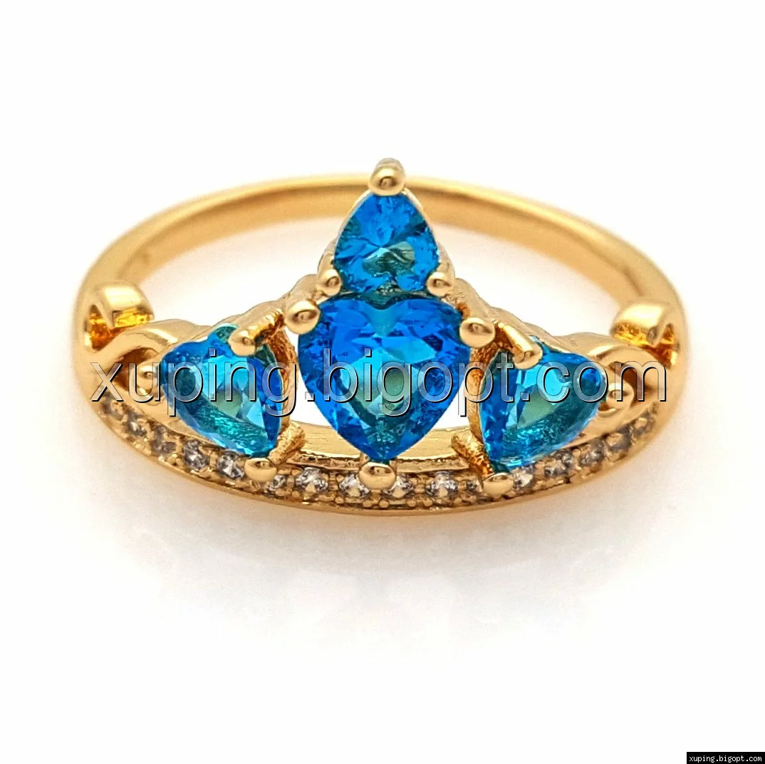 Кольцо позолоченное, Корона, с голубым цирконием, р.17, р.18, р.18,5 р.19,5 р.20,5