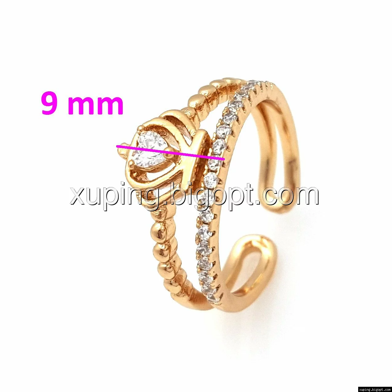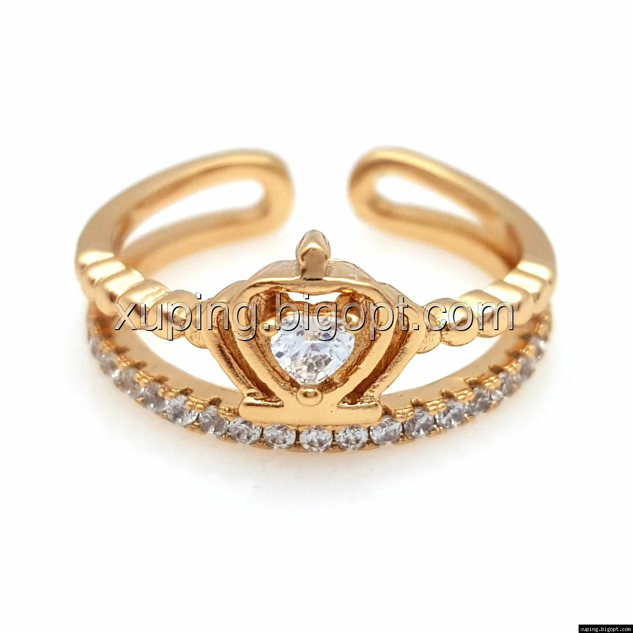 Кольцо позолоченное, Корона с цирконием, р.17,5, регулируется