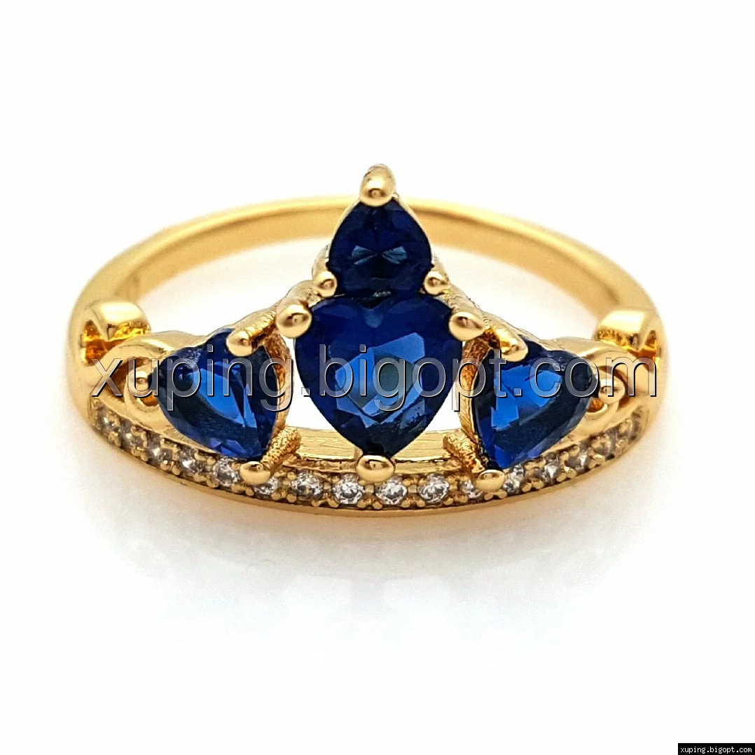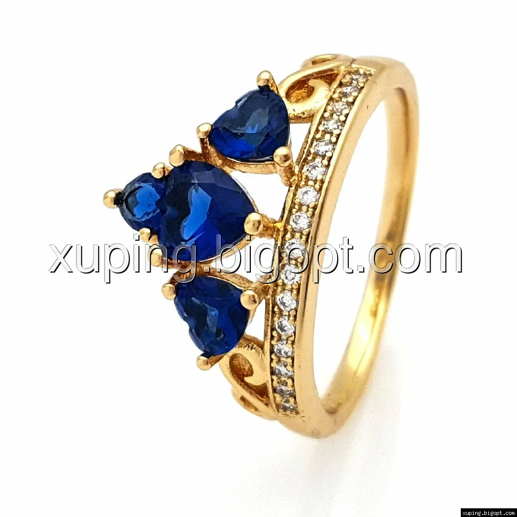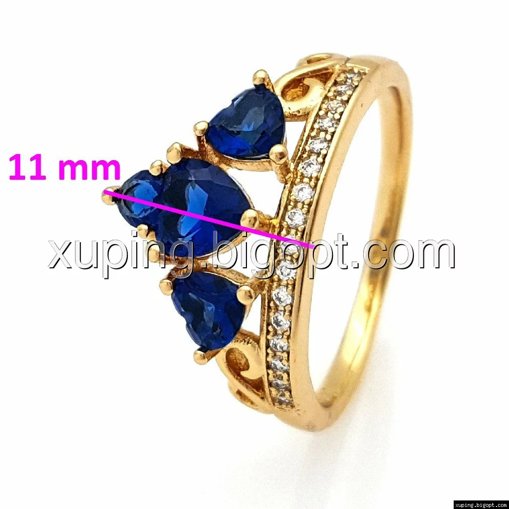 Кольцо позолоченное, Корона с синими камнями, р.17, р.18, р.18,5, р.19,5, р.20,5