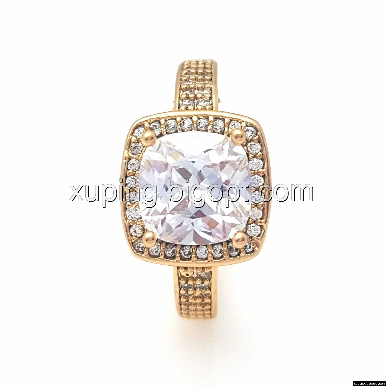 Кольцо позолоченное, Квадрат с цирконием, р.17, р.18,5, р.19,5