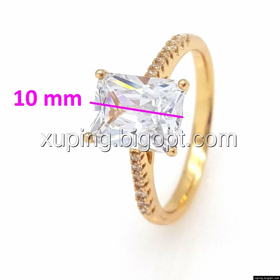 Кольцо позолоченное, с Прямоугольным цирконием, р.17, р.18