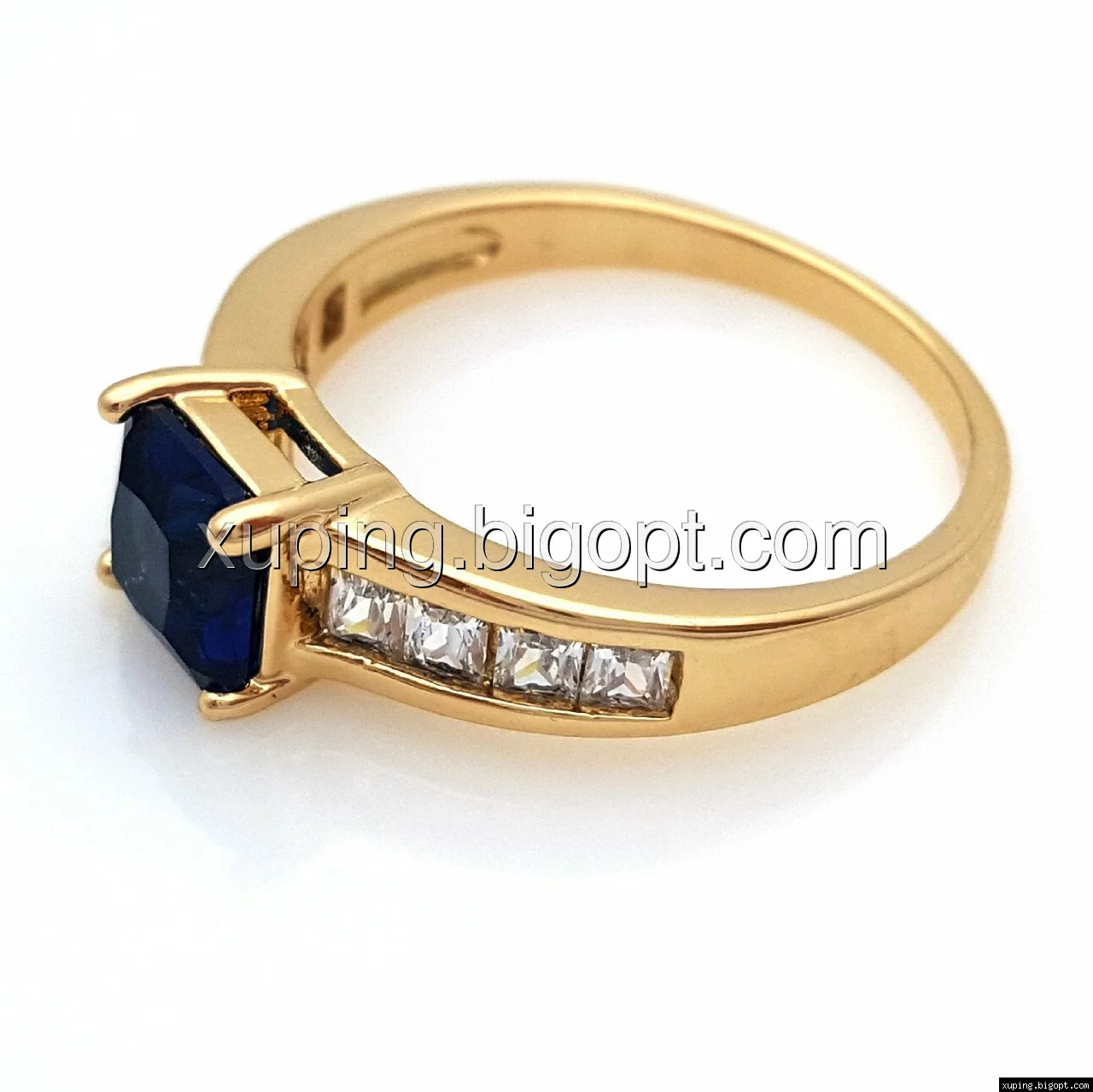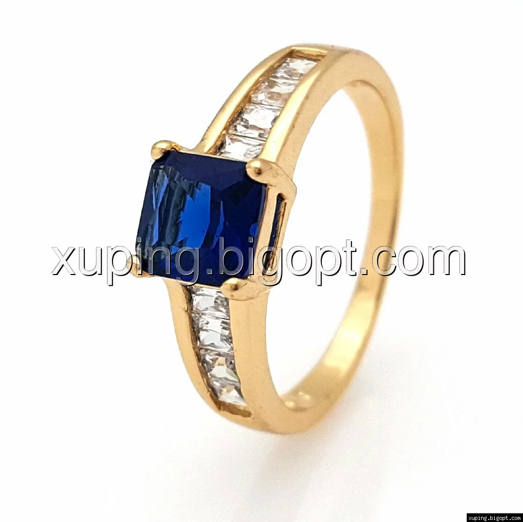 Кольцо позолоченное, Синий цирконий, р.17,5, Xuping