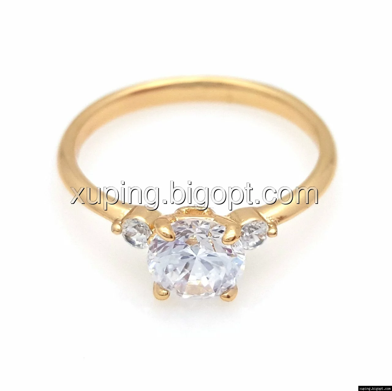 Кольцо позолоченное, Три циркония, р.17, р.18, р.18,5, р.19,5