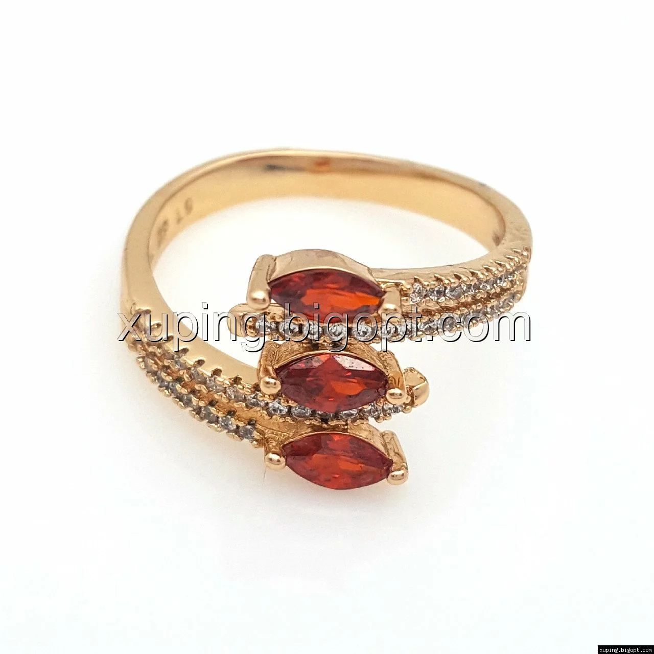 Кольцо позолоченное, Три красных циркония, р.18, р.18,5