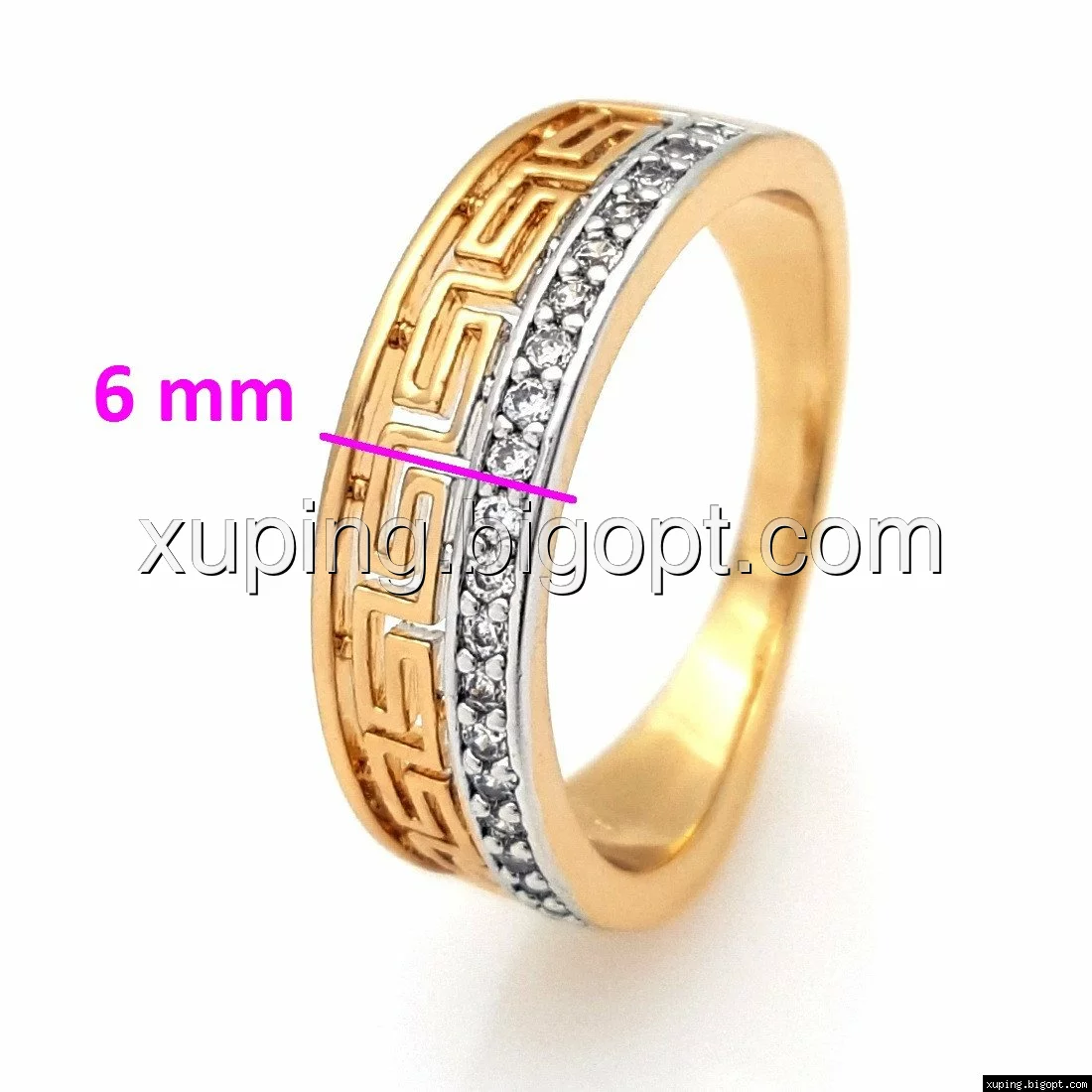 Кольцо Греческий рисунок, с дорожкой камней, р.17, р.18, р.18,5, р.19,5, позолота+родий