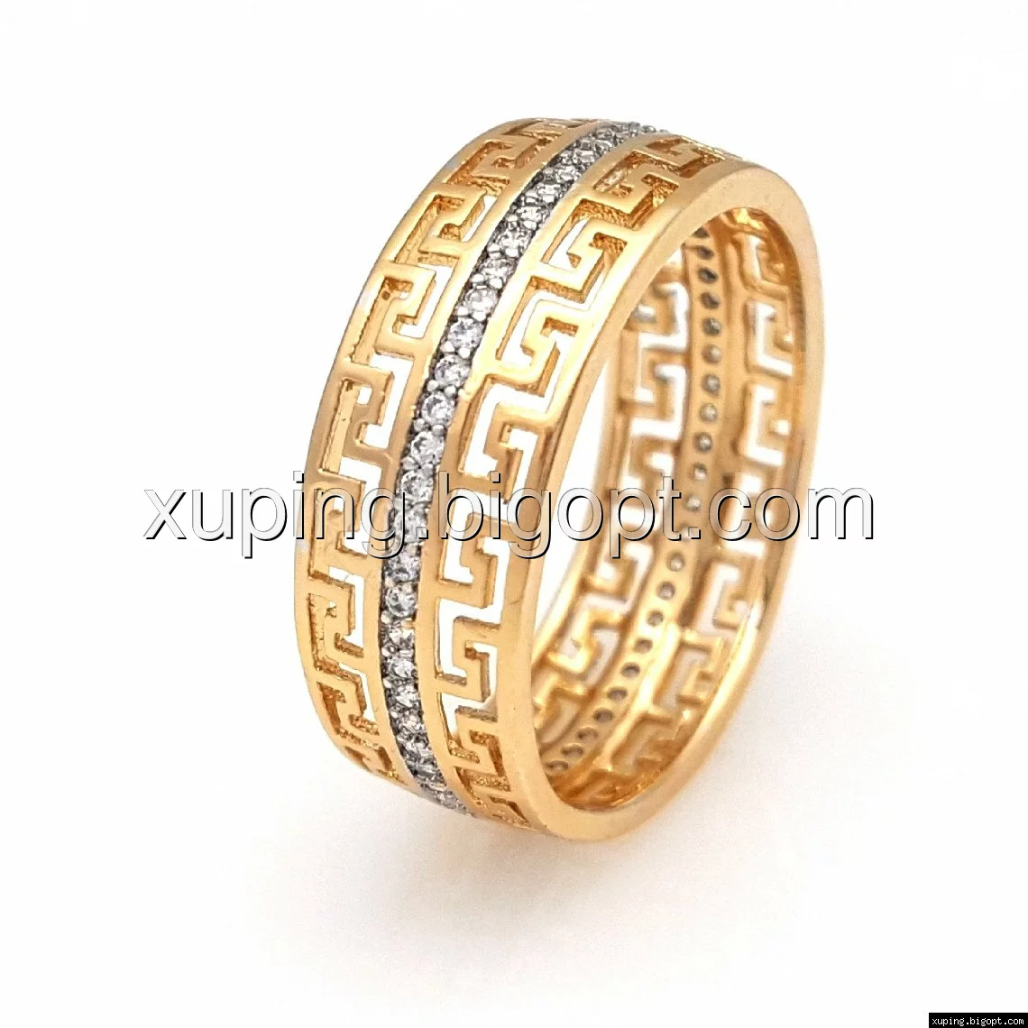Кольцо Греческий узор, с дорожкой циркония, р.17, позолота