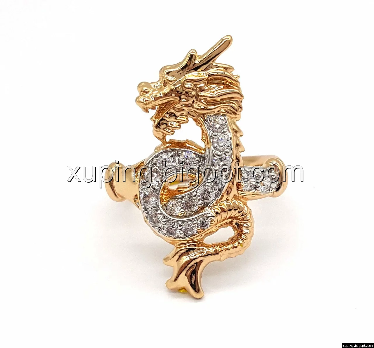Кольцо Дракон, с цирконием, р.16,5, позолота+родий