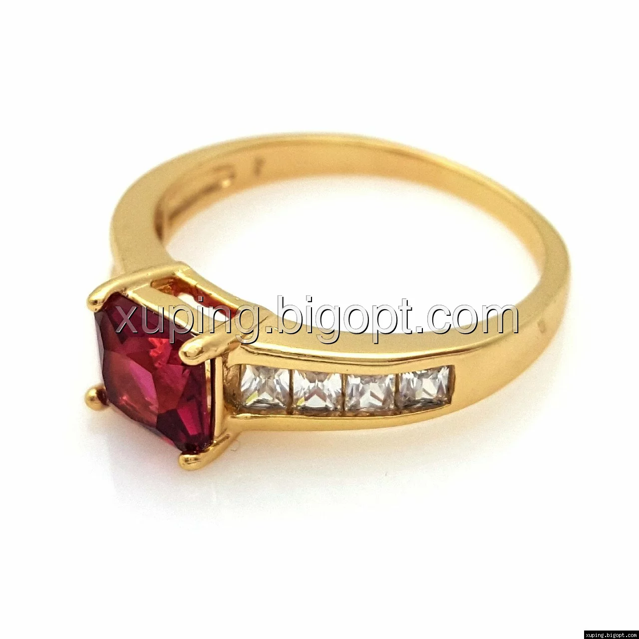 Кольцо с кубичным цирконием под рубин, р.17, р.18, р.19, позолота Xuping