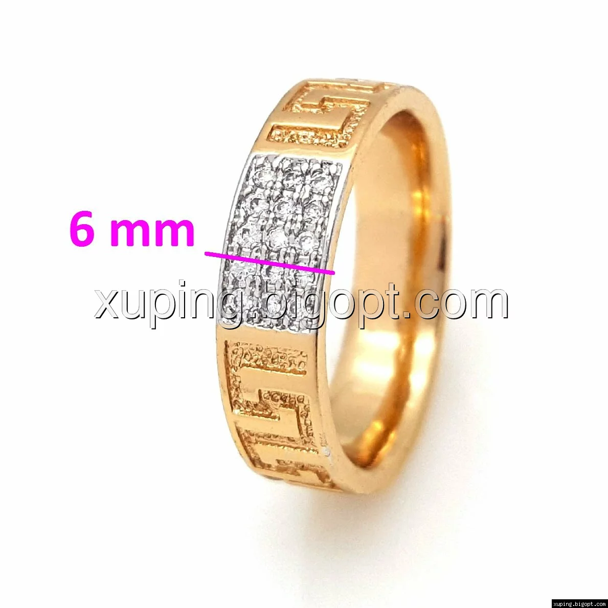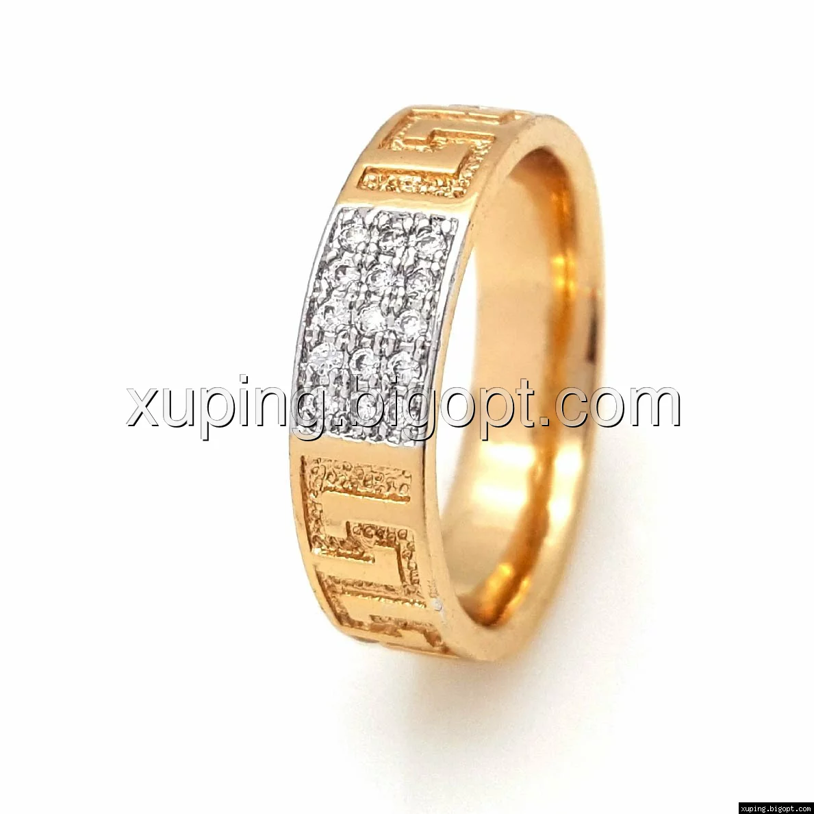 Кольцо с Греческим рисунком, вставка цирконий, р.17, позолота+родий, Xuping