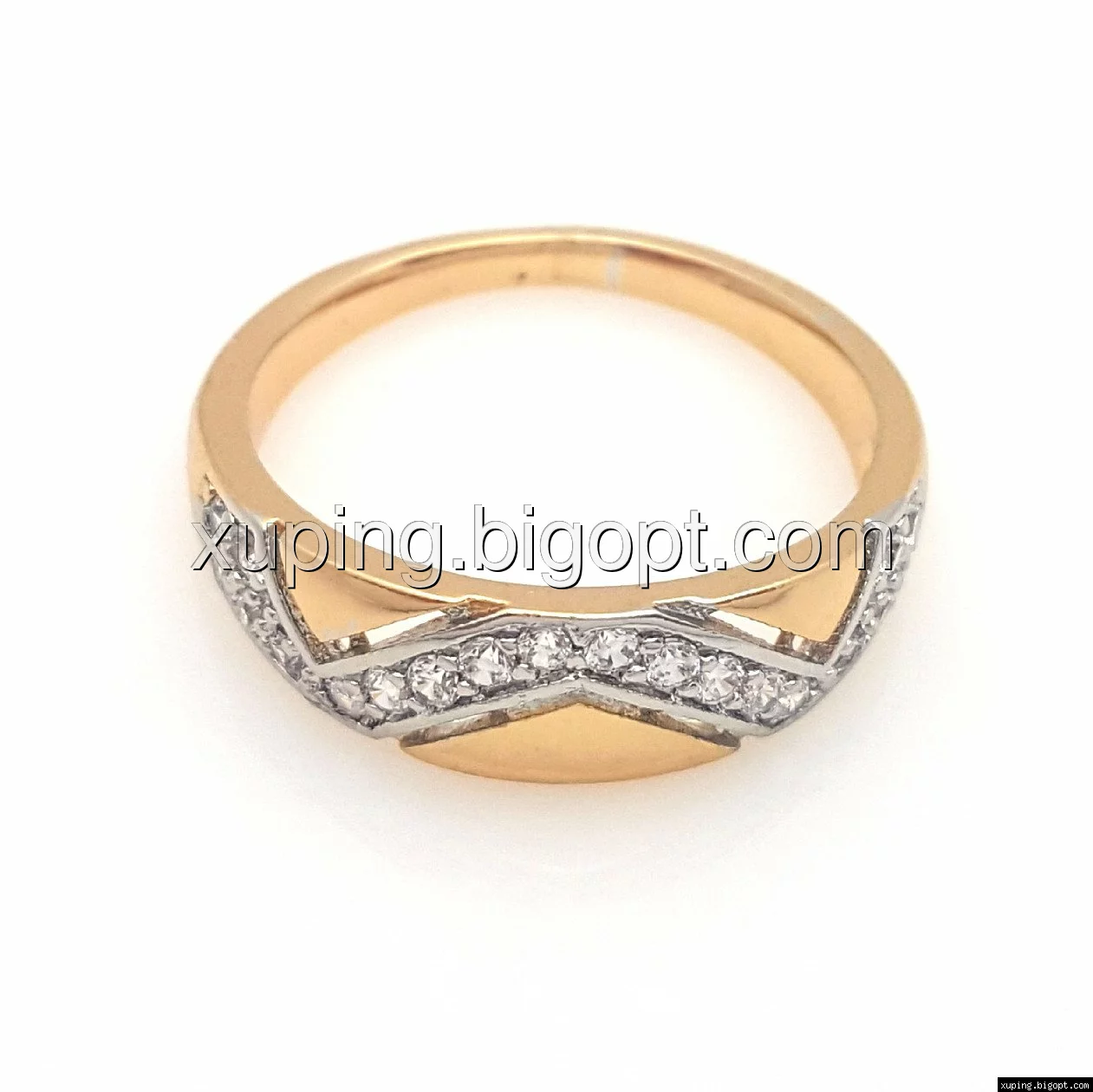 Кольцо с волнистой дорожкой, россыпь камней, р.17, р.18, р.19, р.19.5 позолота+родий