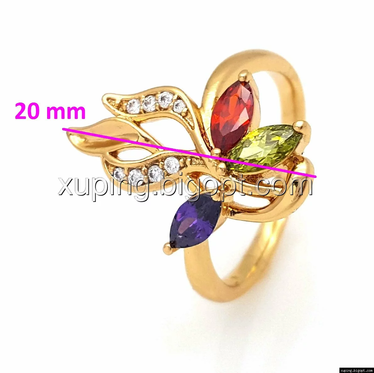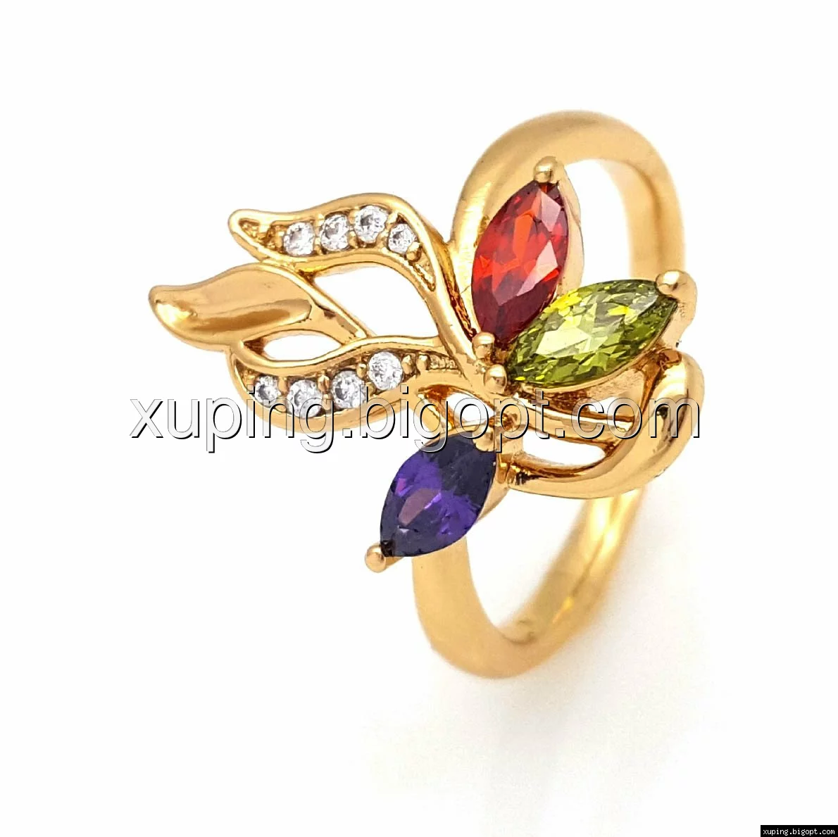 Кольцо Стебелек, с разноцветным цирконием, р.17, р.18, р.18,5,.р.19,5, позолота Xuping