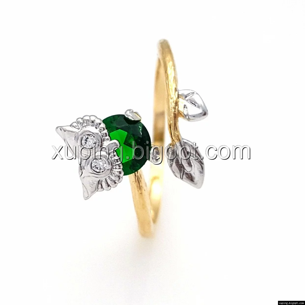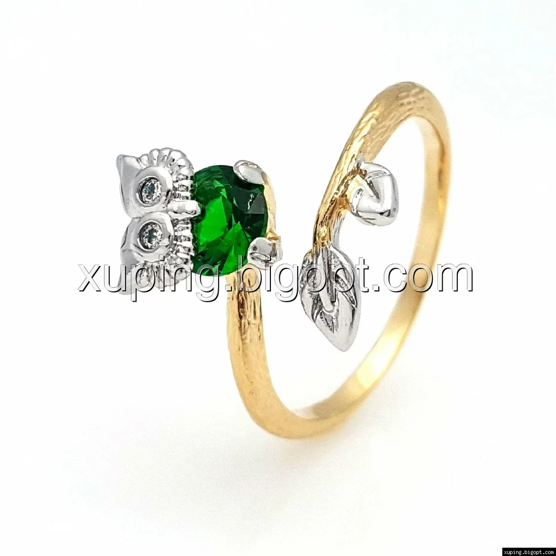 Кольцо Сова, с зеленым цирконием, р.17, р.17,5, р.18,5 р.19, позолота+родий