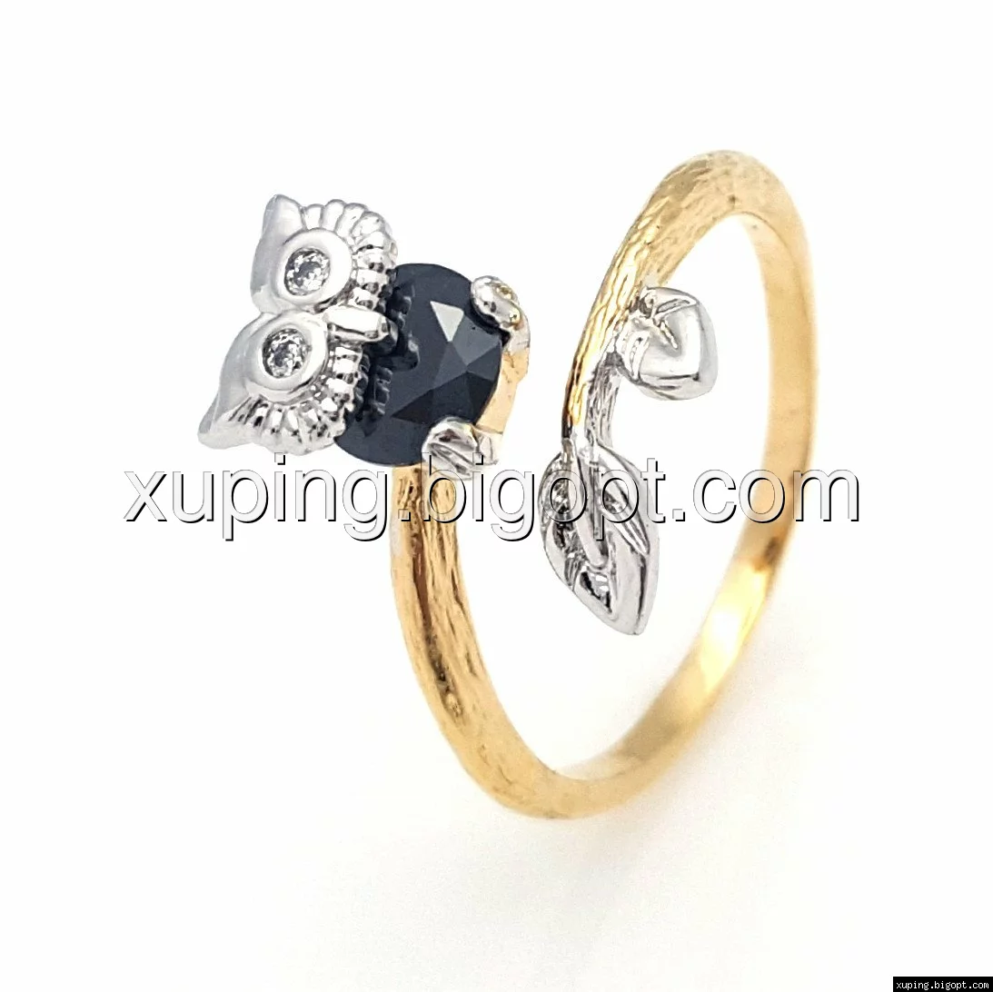Кольцо Сова, с черным цирконием, р.16,5, р.18, позолота+родий