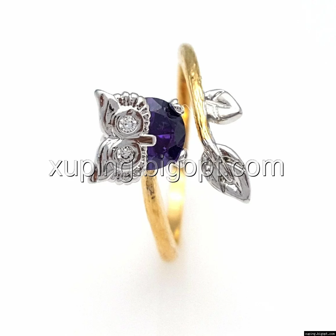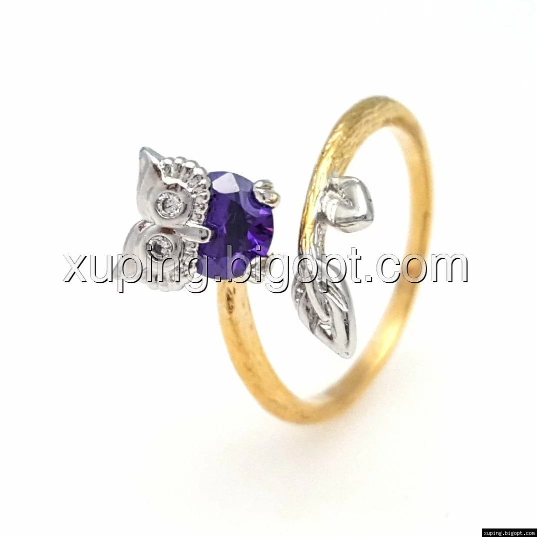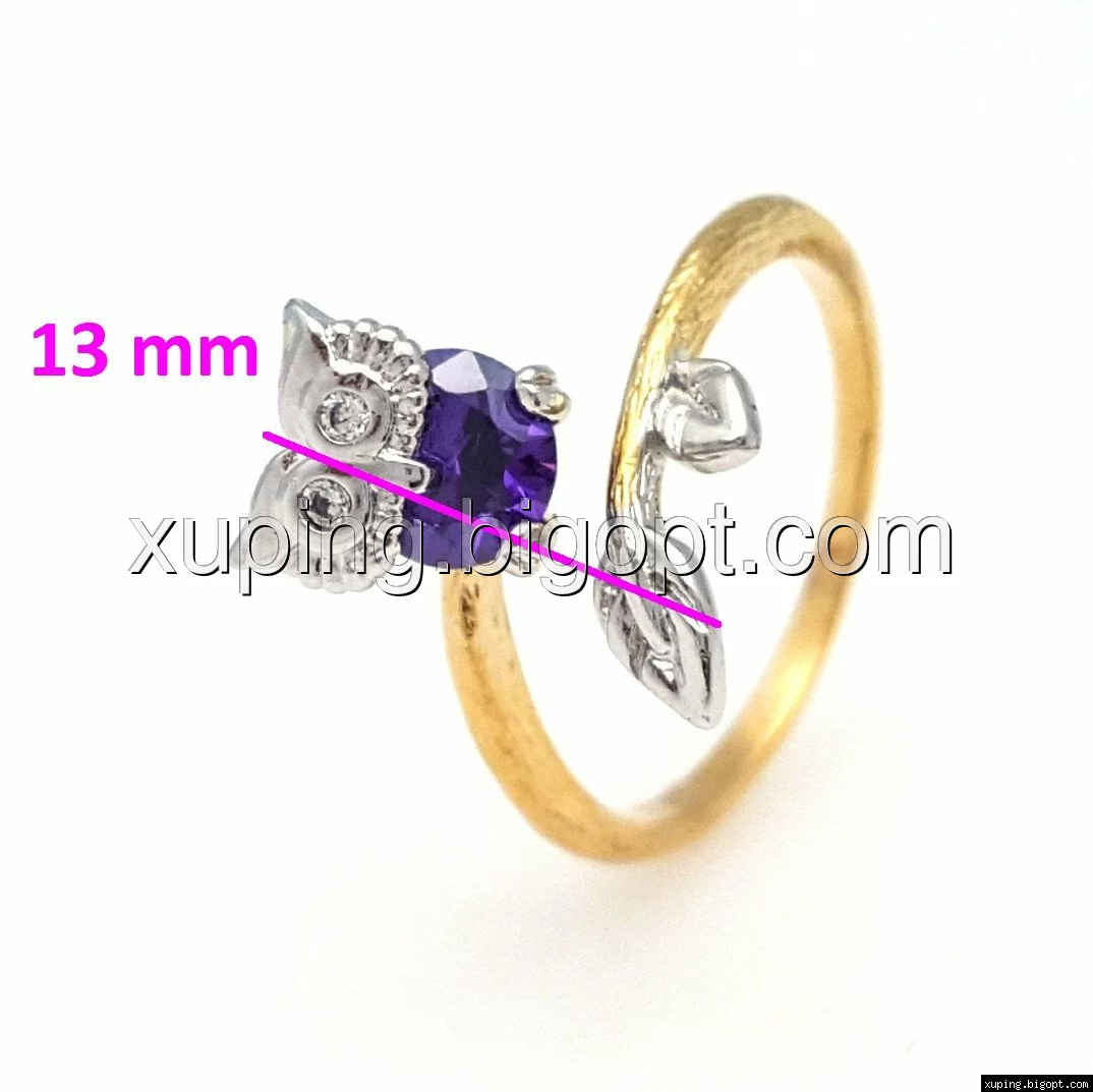 Кольцо Сова, с фиолетовым цирконием, р.16,5, р.18, р.19, позолота+родий