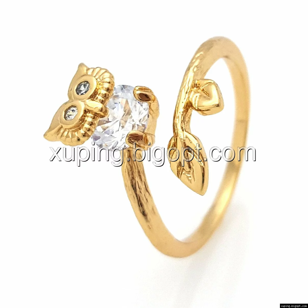 Кольцо Совушка, с граненным цирконием, р.16-16,5, р.18-18,5, р.19,-19,5, позолота Xuping