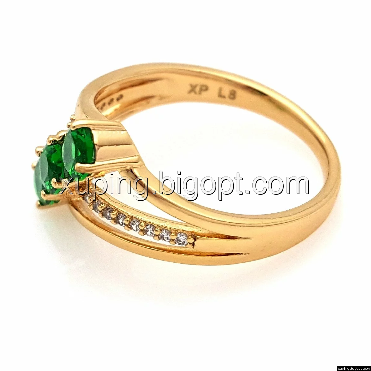 Кольцо Три Зеленых циркония, р.17, р.18, р.18,5, р.19,5, позолота Xuping