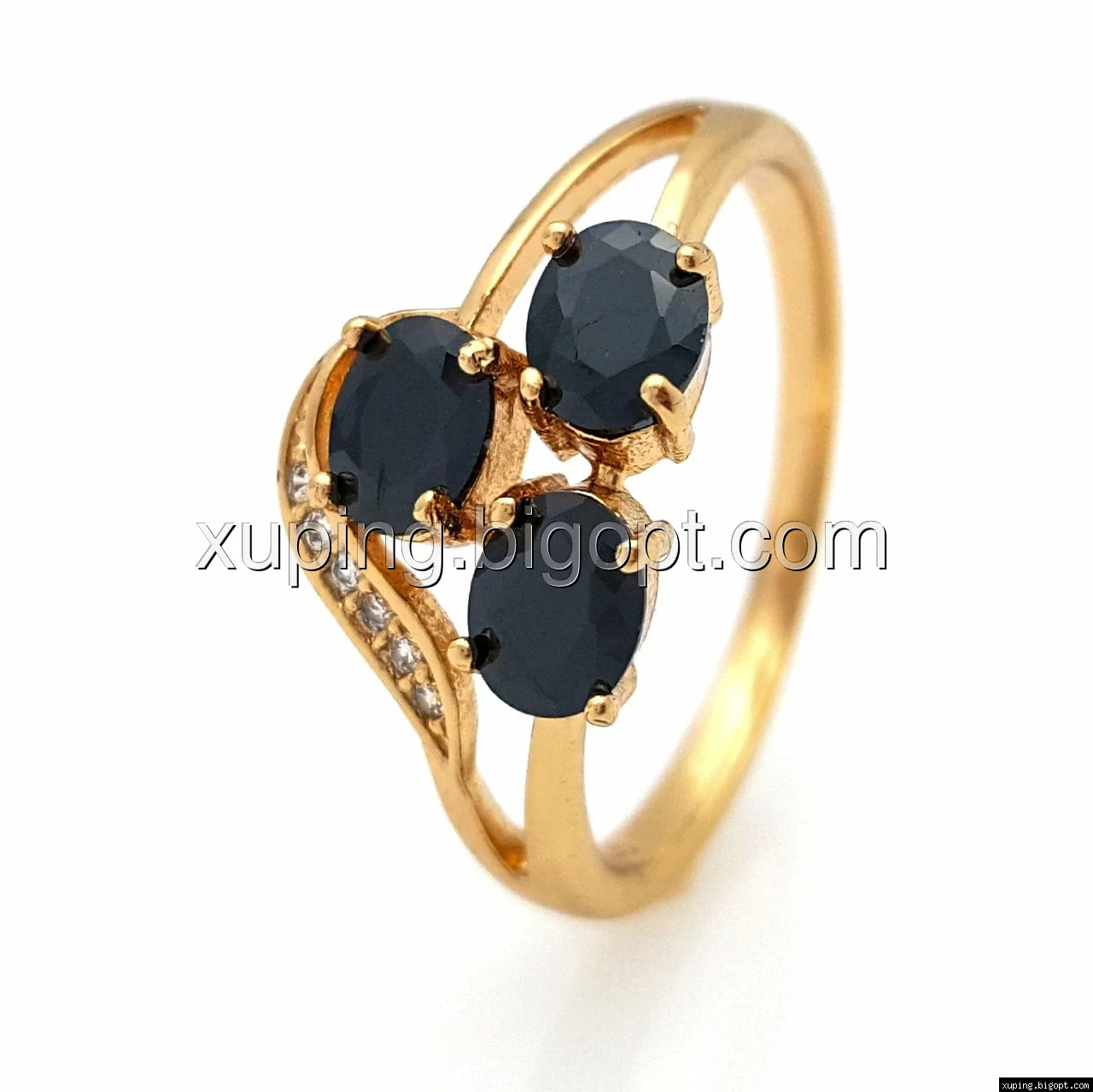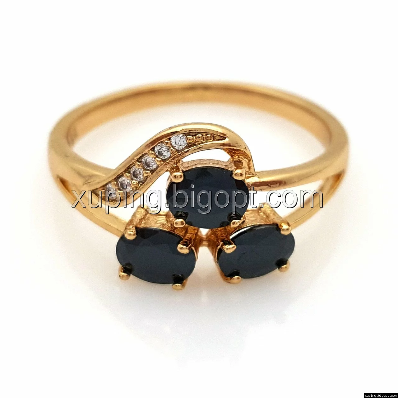 Кольцо Три черных циркония, р.17, р.18, р.18,5, р.19,5, позолота Xuping