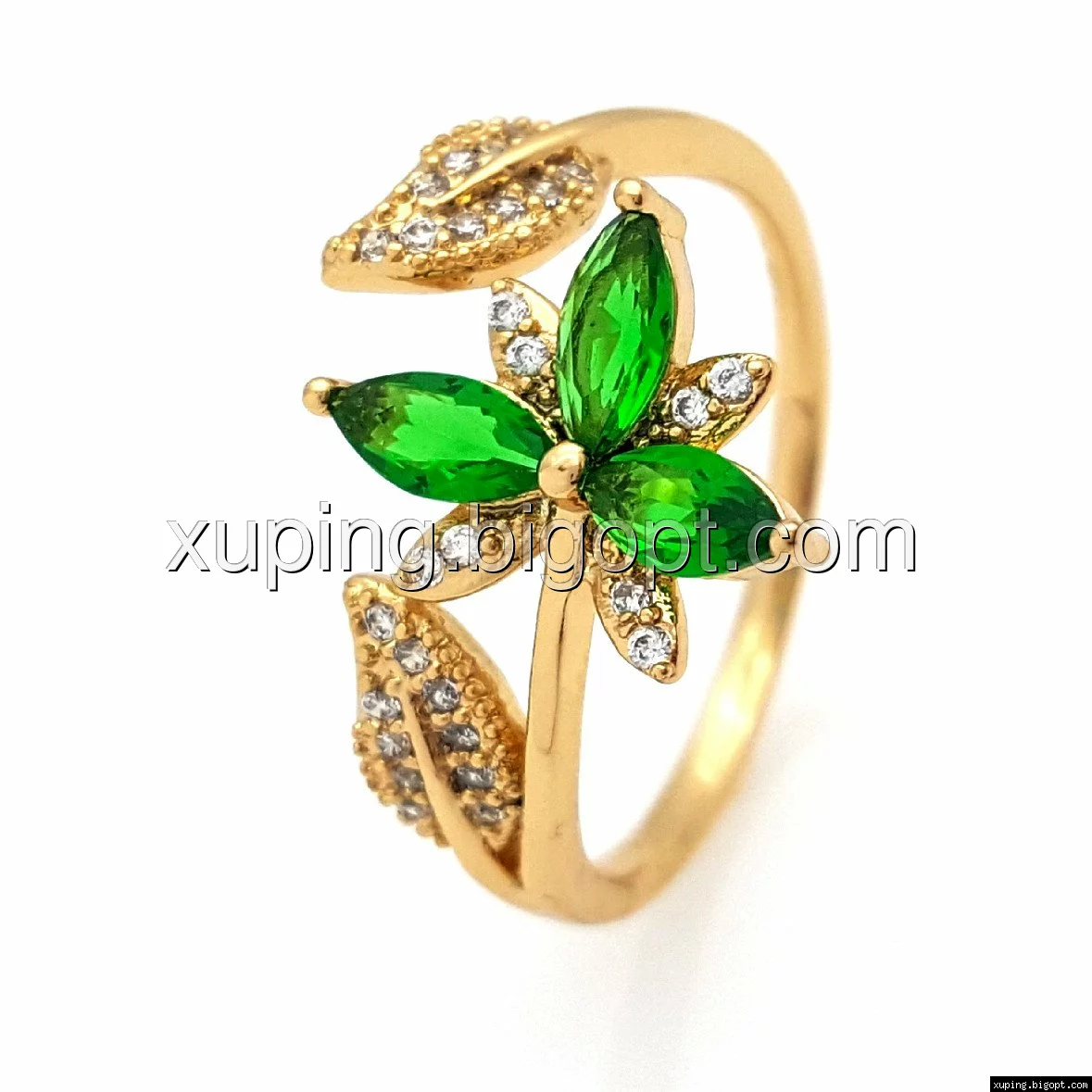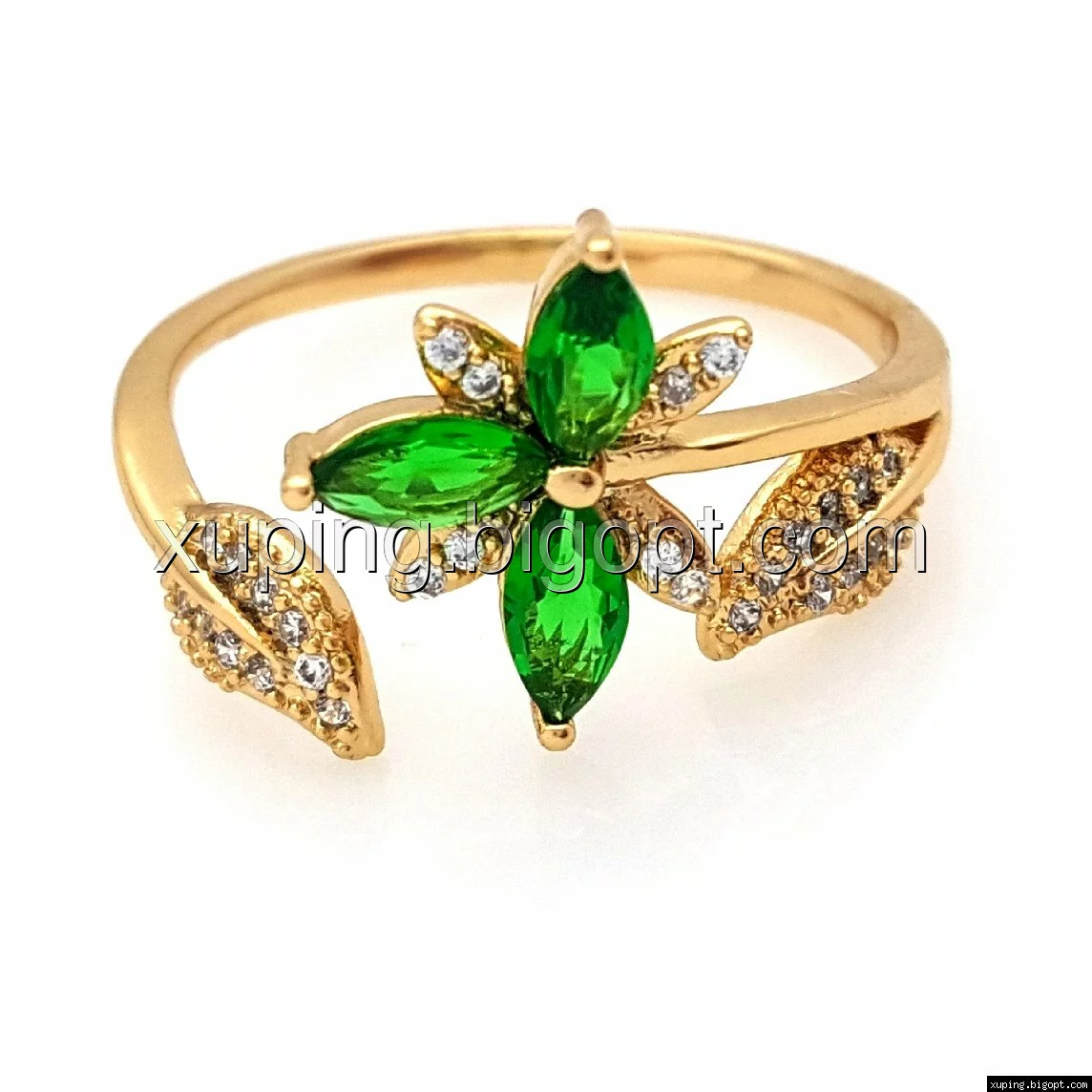 Кольцо Трилистник, с зеленым цирконием, р.16,5-17, р.18,5-19, позолота Xuping
