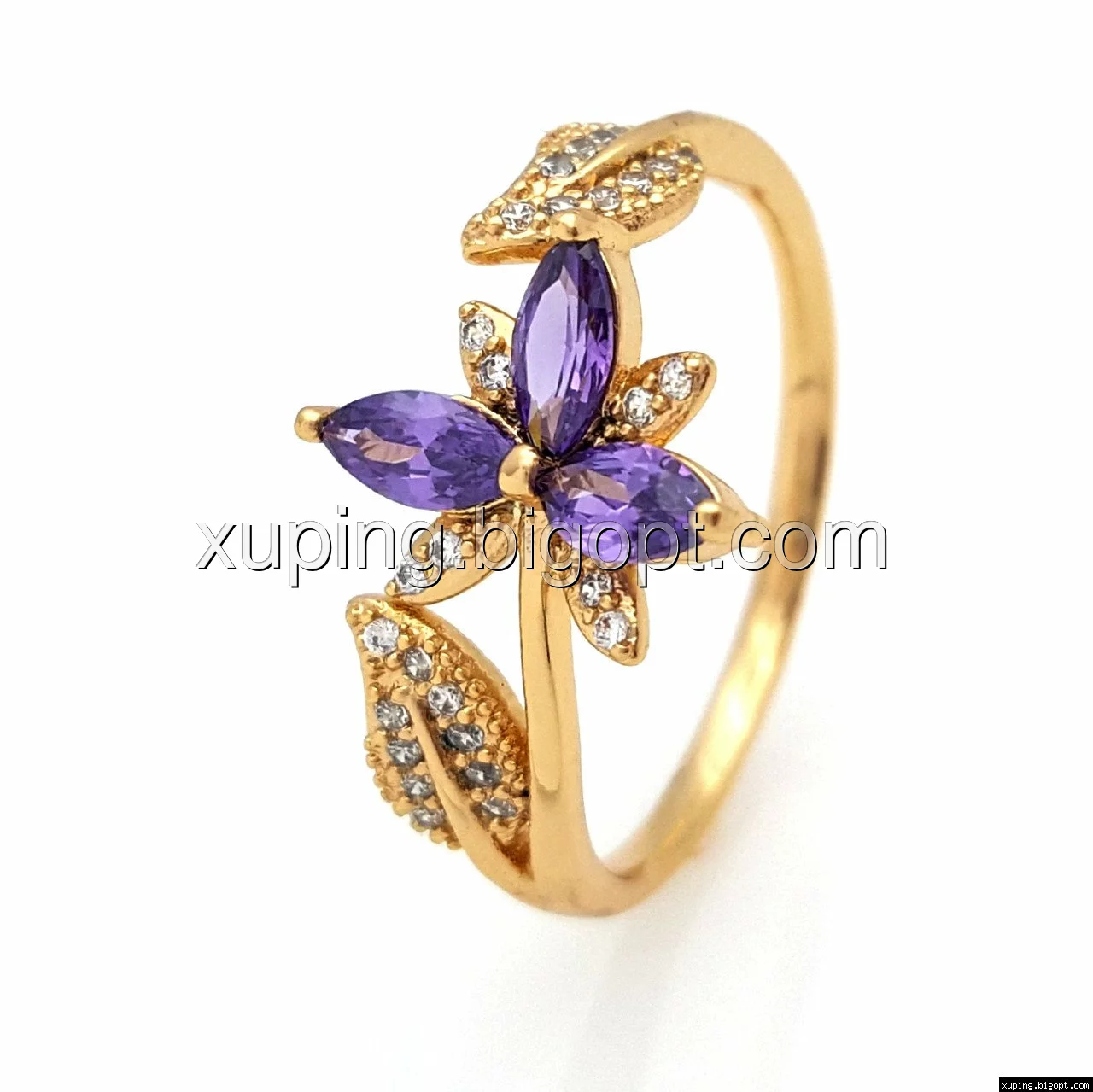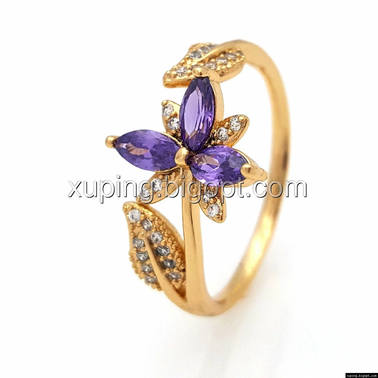Кольцо Трилистник с фиолетовым цирконием, р.16,5-17,5, р.19-20, позолота Xuping