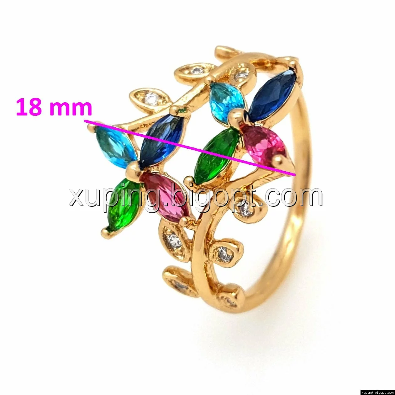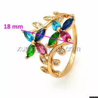 Кольцо Два Цветка, с разноцветным цирконием, р.17, р.18, р.18,5, позолота Xuping