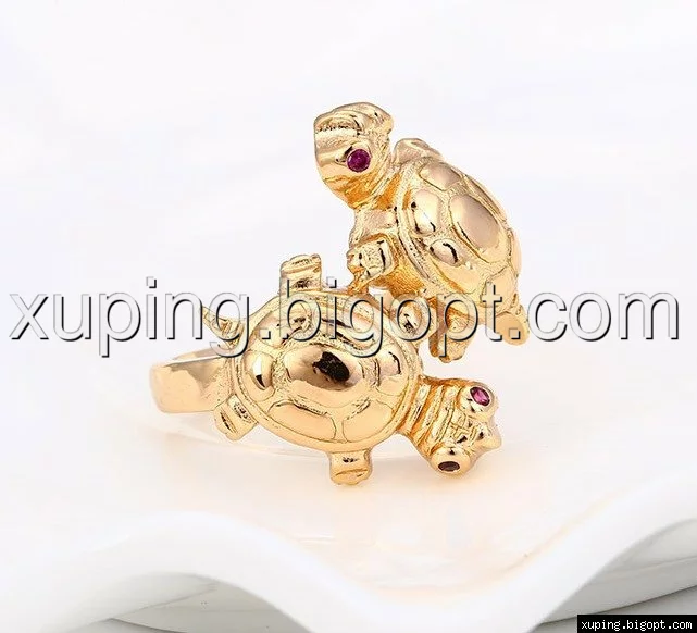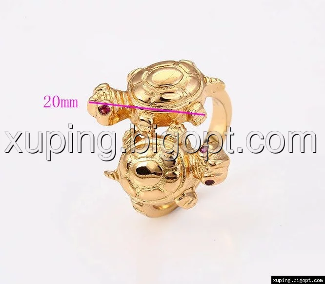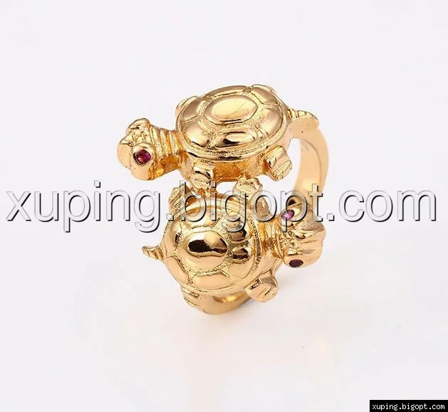 Кольцо Две черепашки с цирконием под рубин, р.17,5 позолота