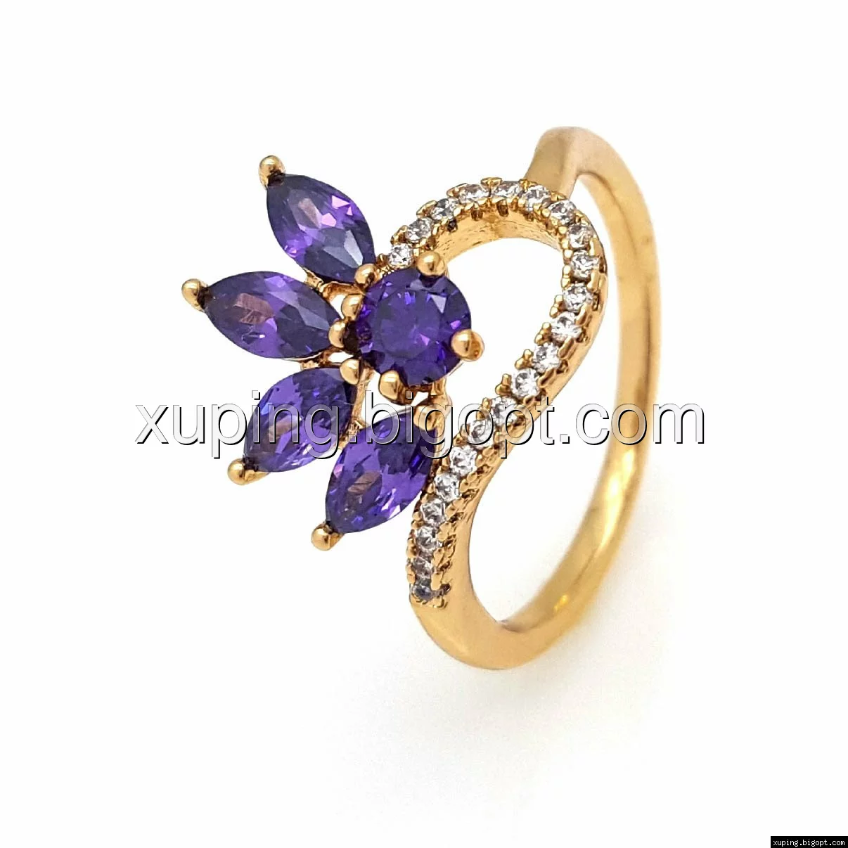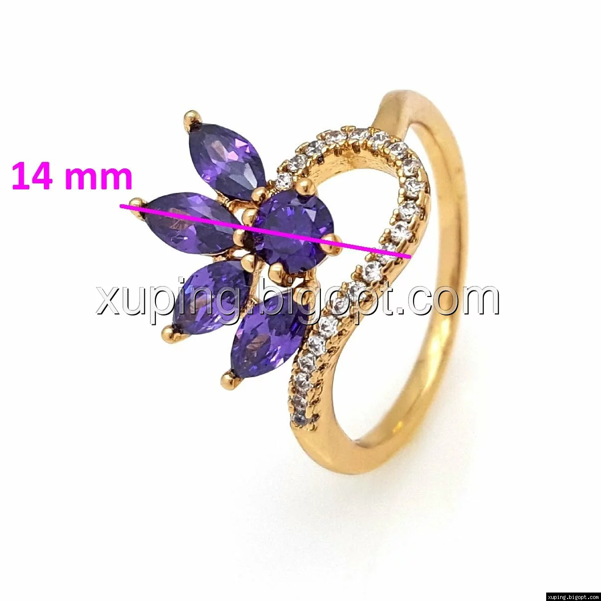 Кольцо Цветочек с фиолетовым цирконием, р.17,5, р.18, р.19,5, позолота Xuping