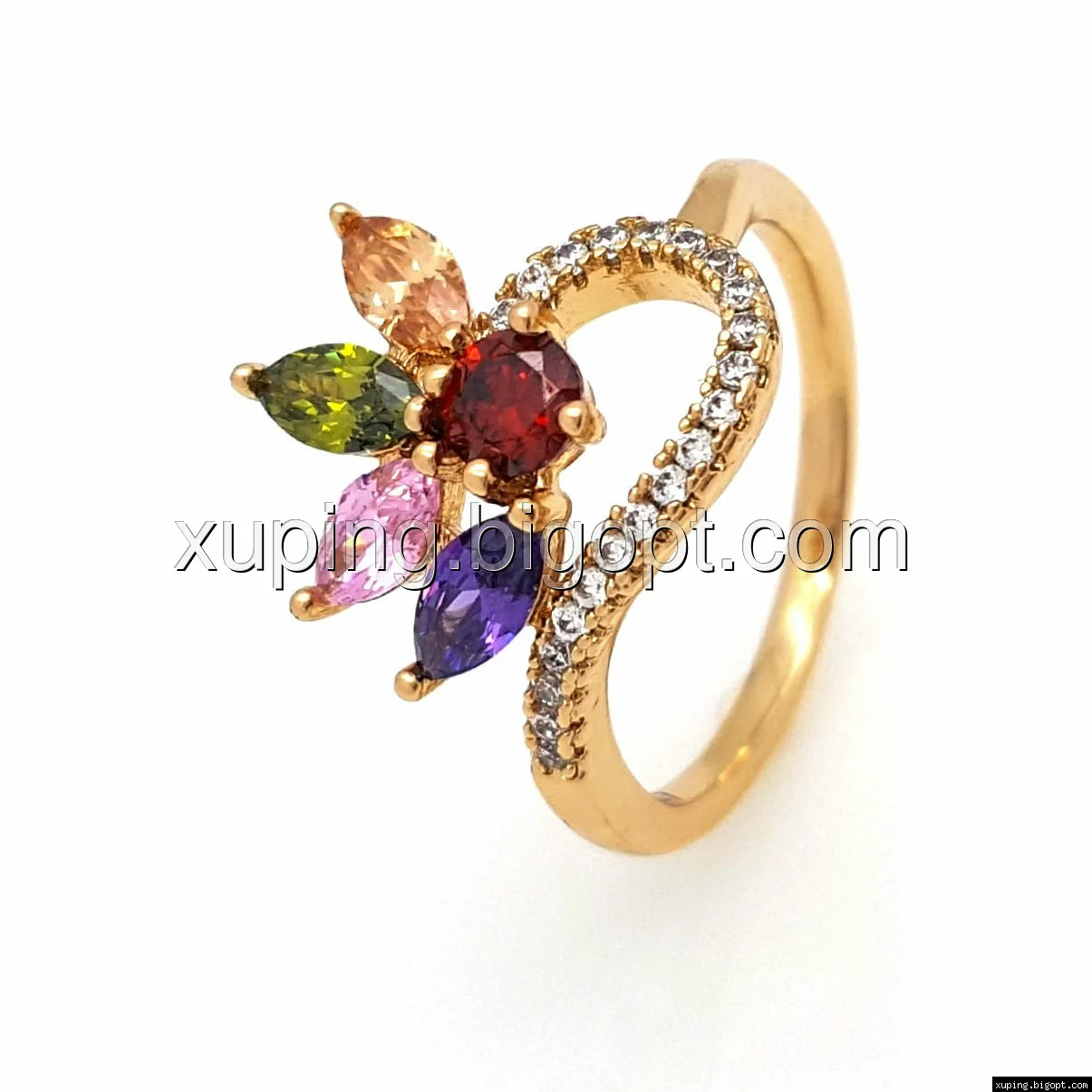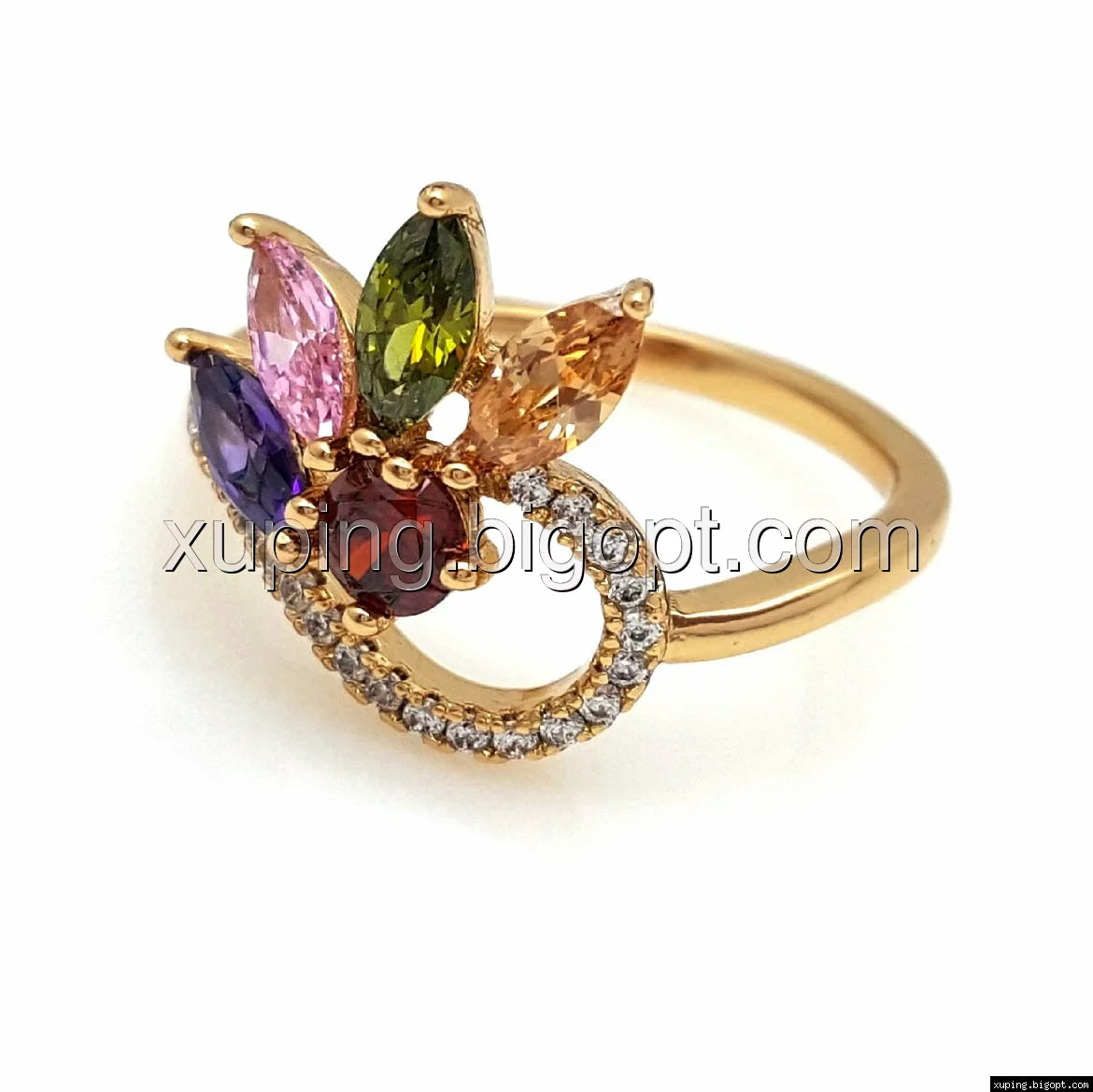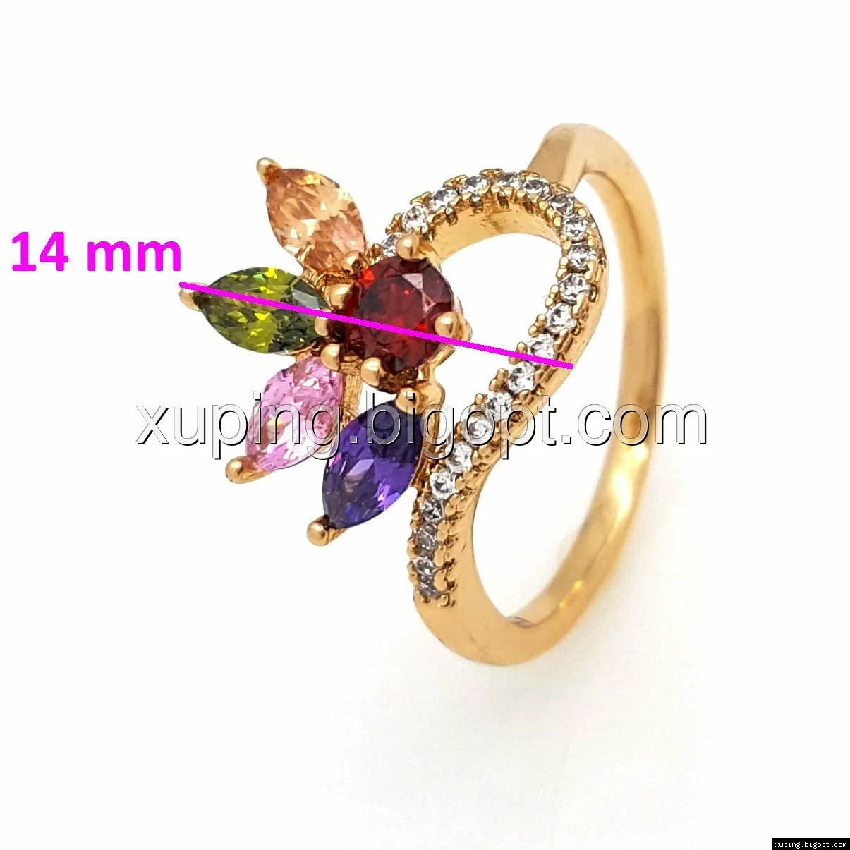 Кольцо Цветок с разноцветным цирконием, р.17, р.18, р.18,5, р.19,5, позолота Xuping