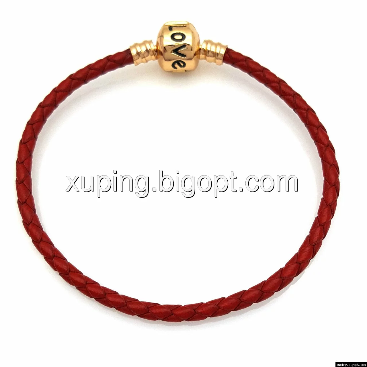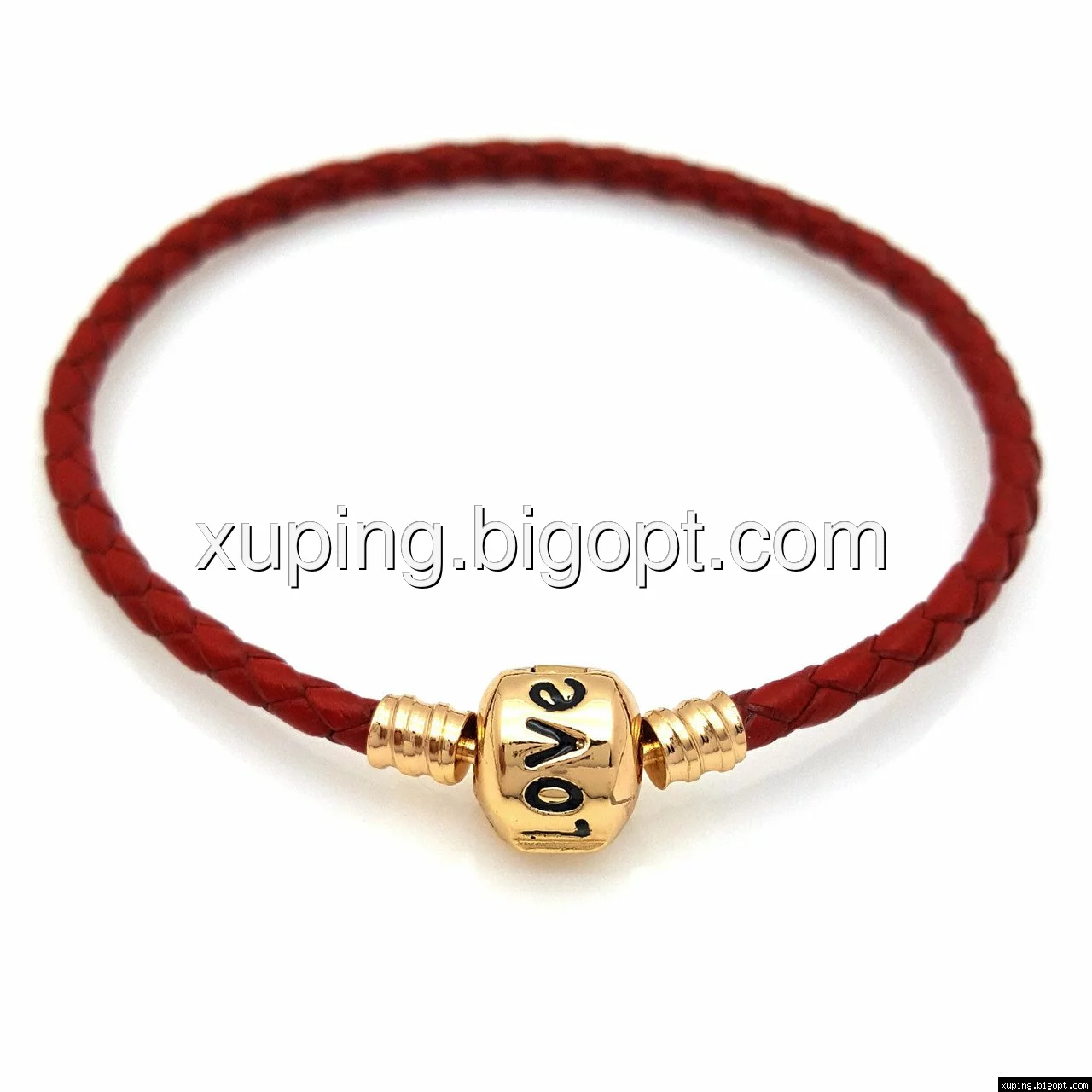 Красный шнурок "Love" на руку, под плетенную кожу, р.18, позолота Xuping