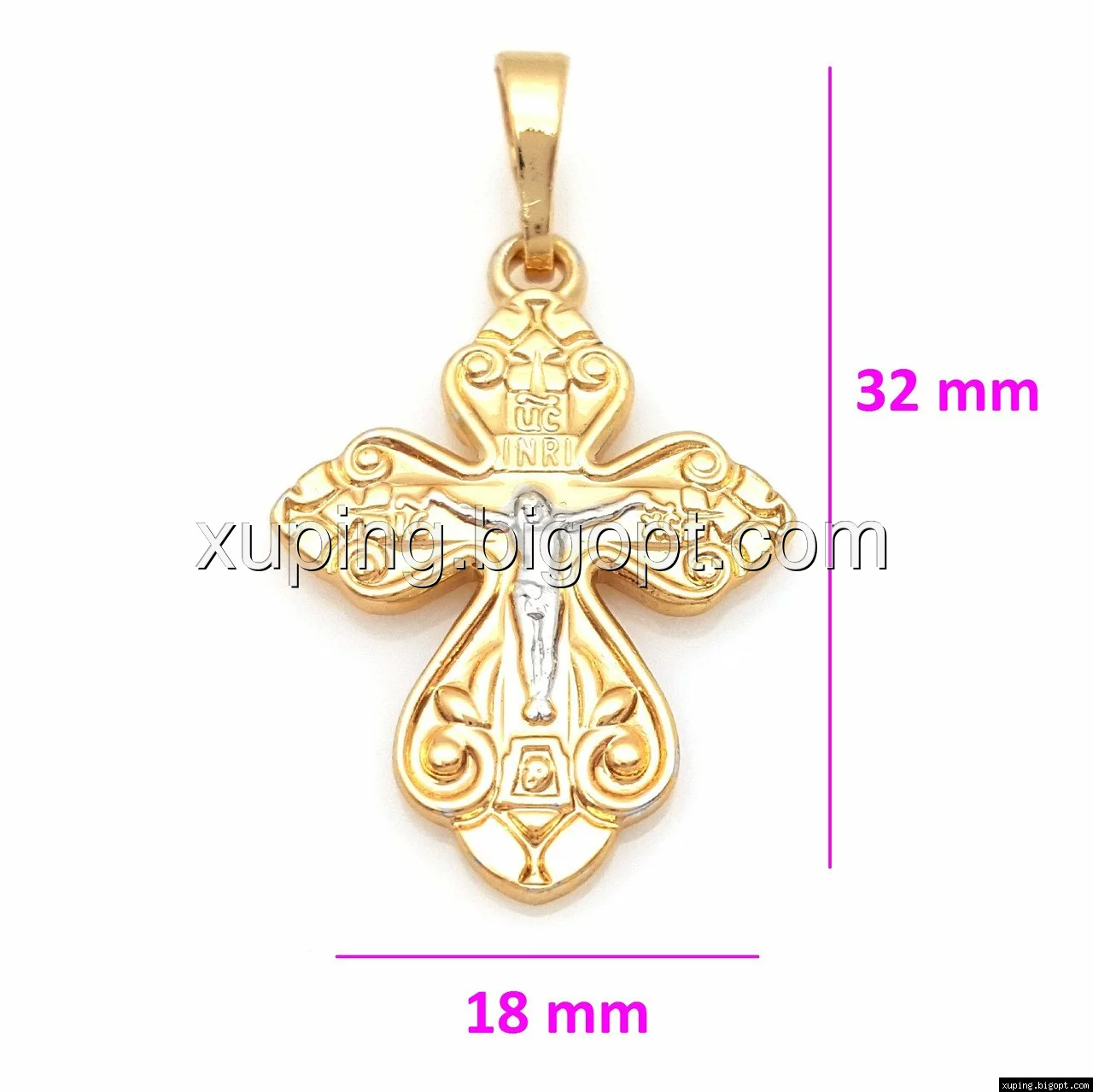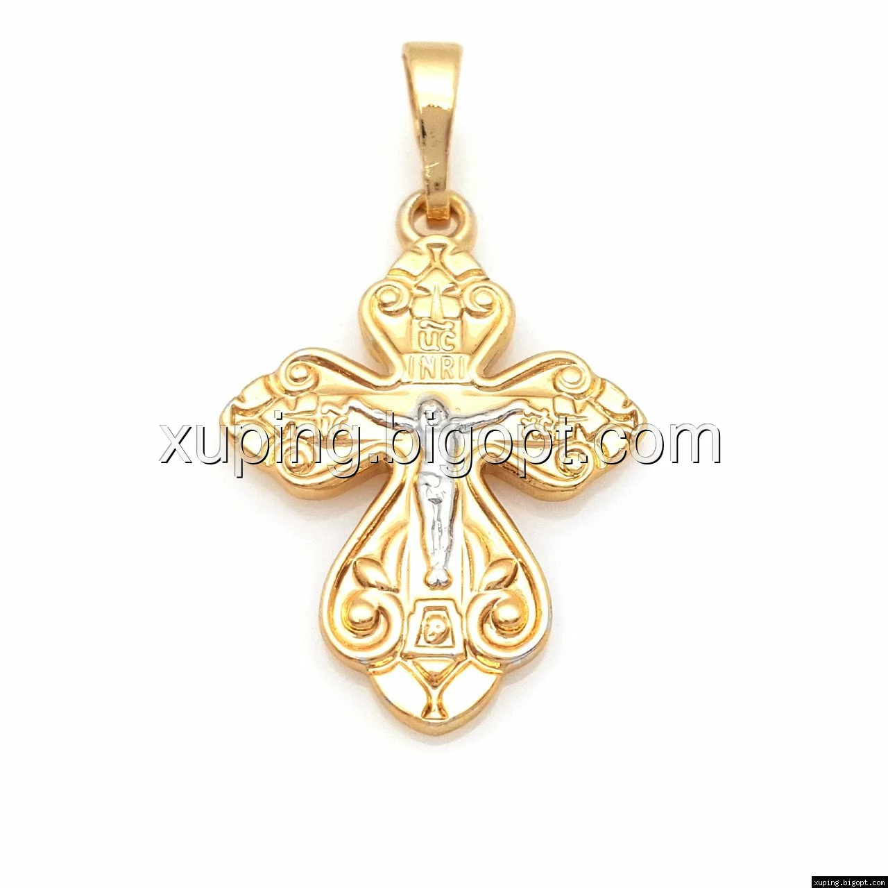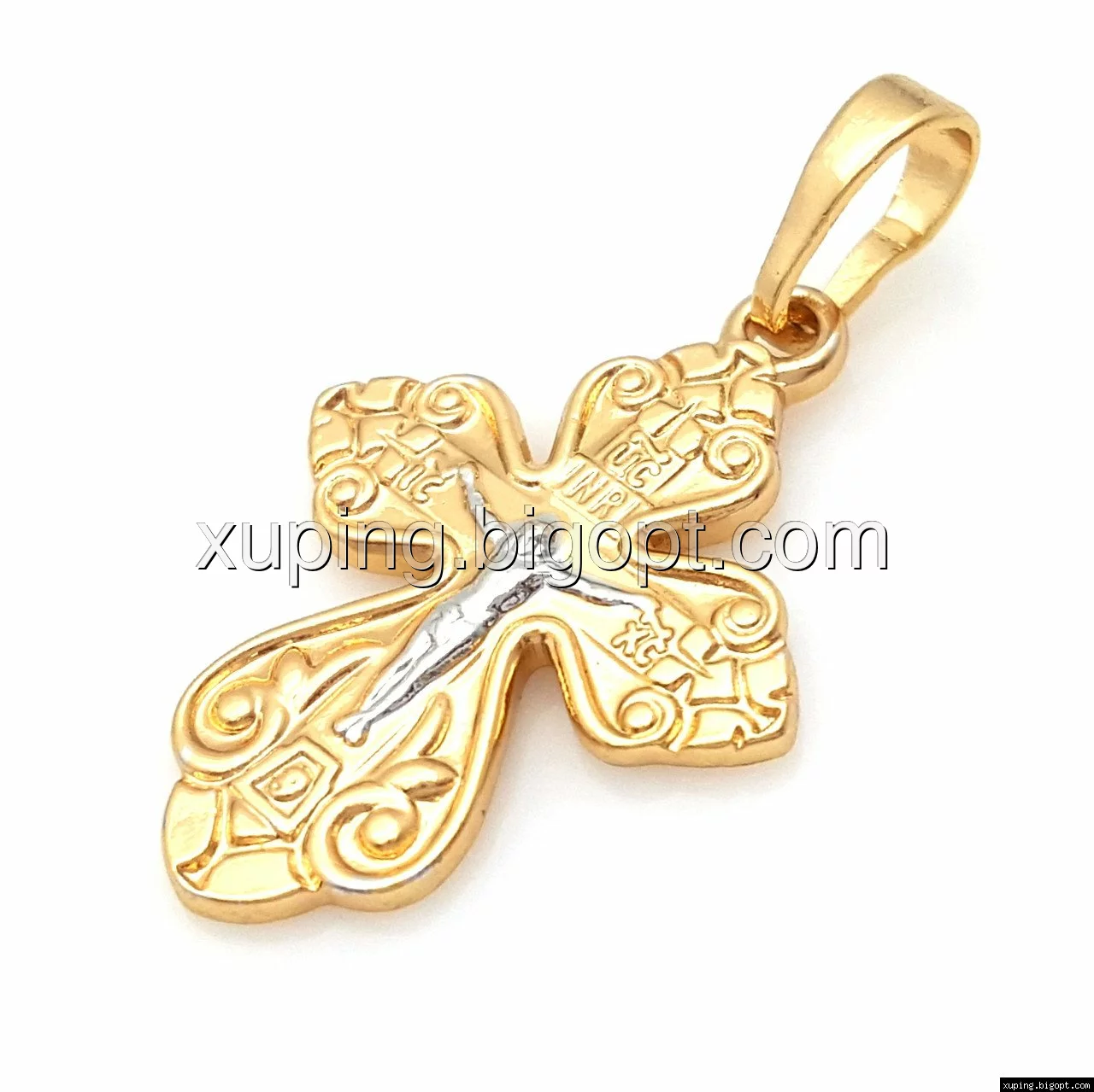 Крест 751018, с распятием и завитушками, без камней, позолота+родий