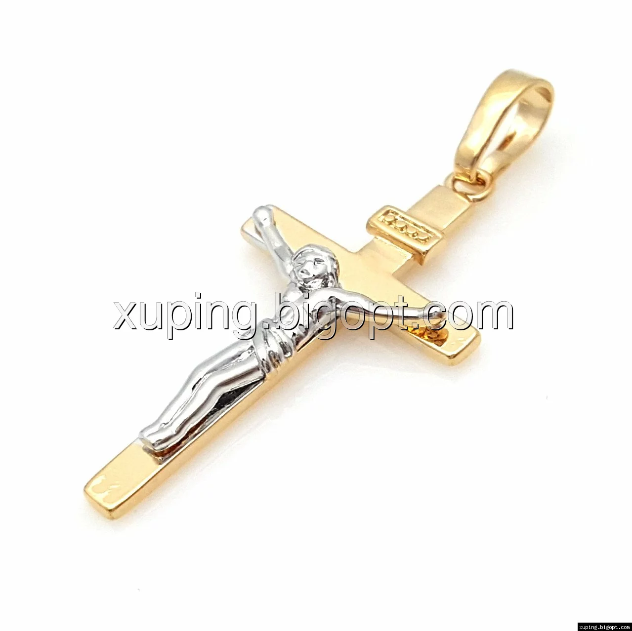 Крест 751020, с распятием, без камней, позолота+родий
