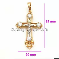 Крест 751027, с распятием, вставки камней, позолота+родий