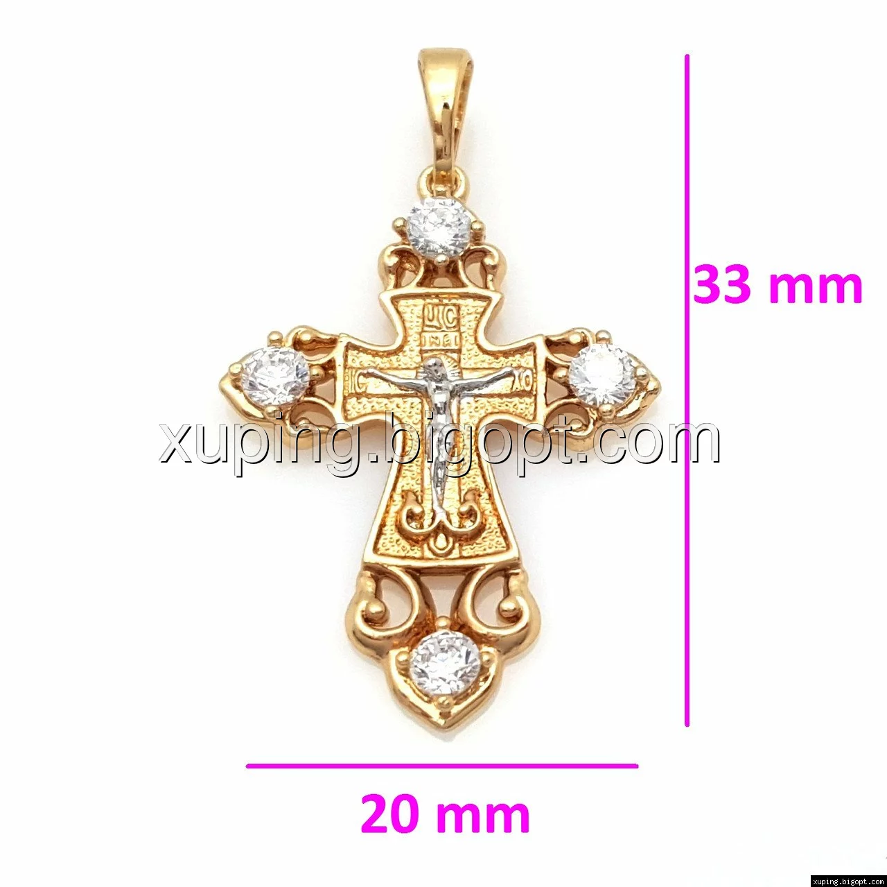 Крест 751031, с распятием, вензеля й 4 циркония, позолота+родий