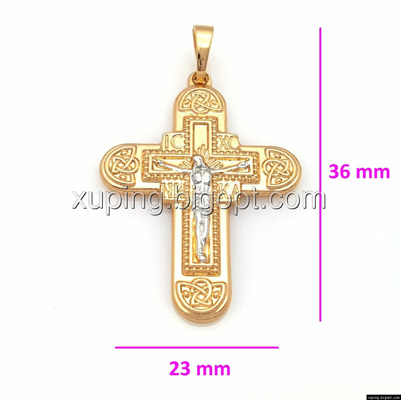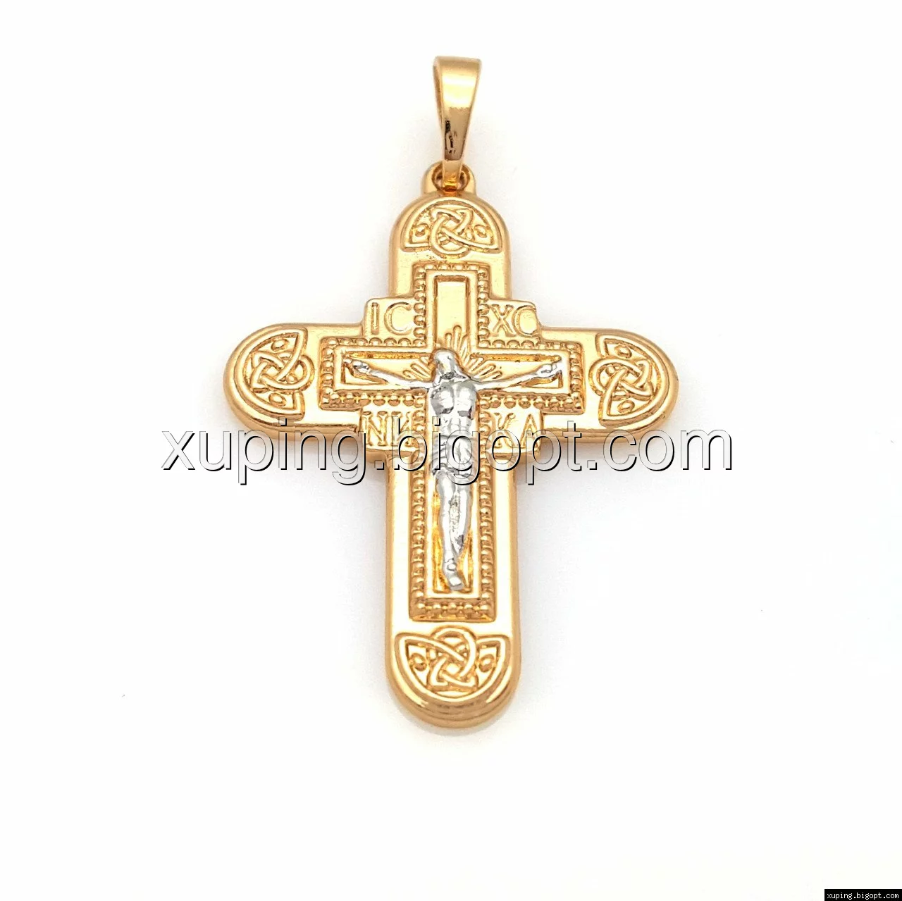 Крест с распятием, без камней, позолота+родий