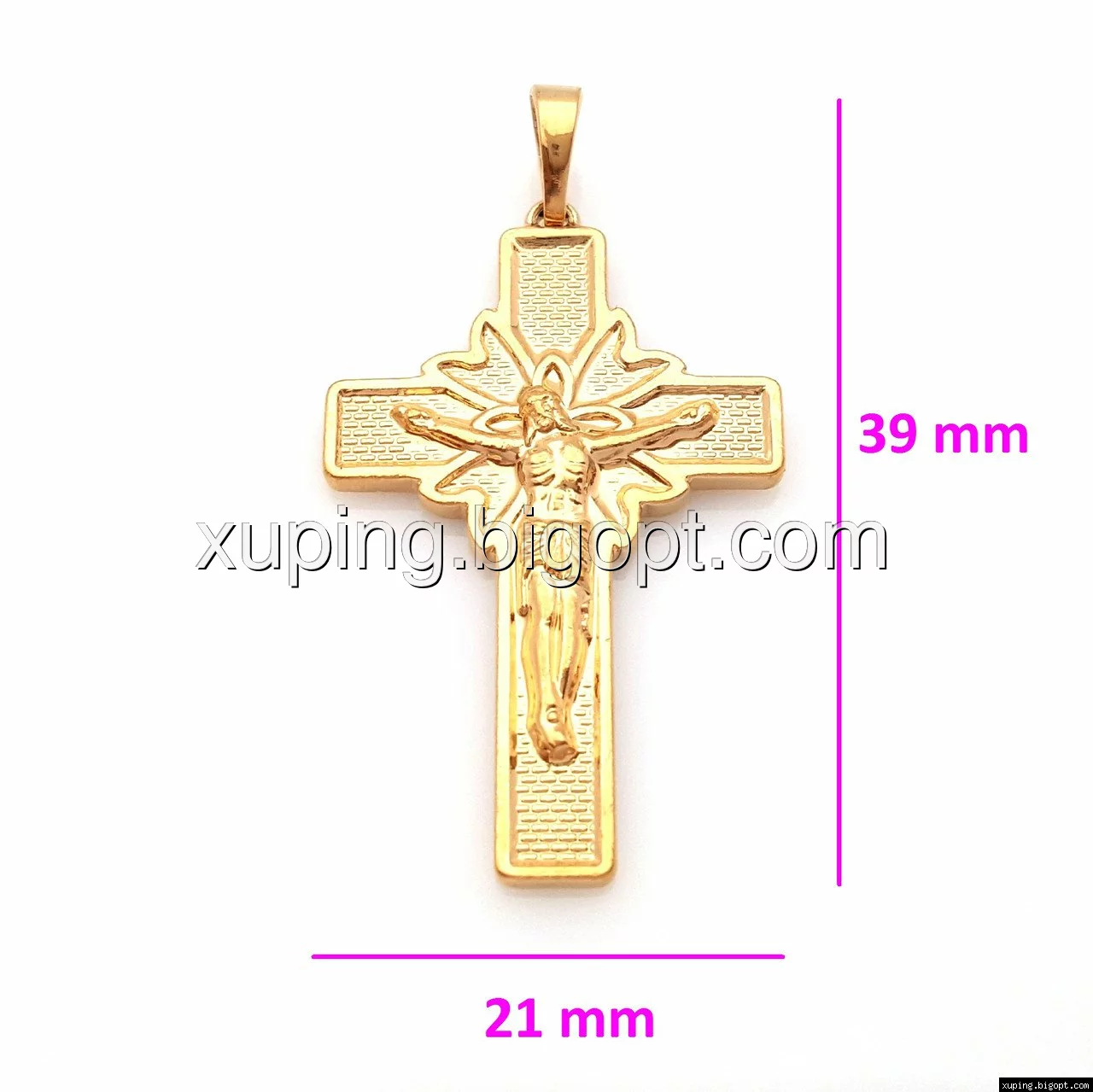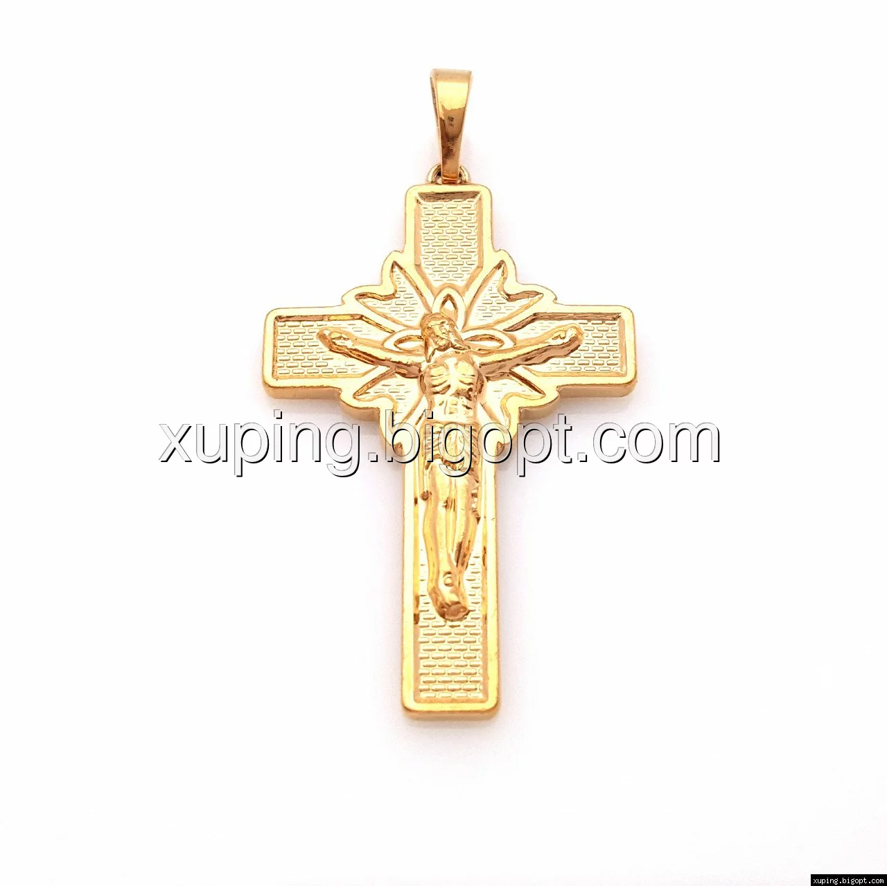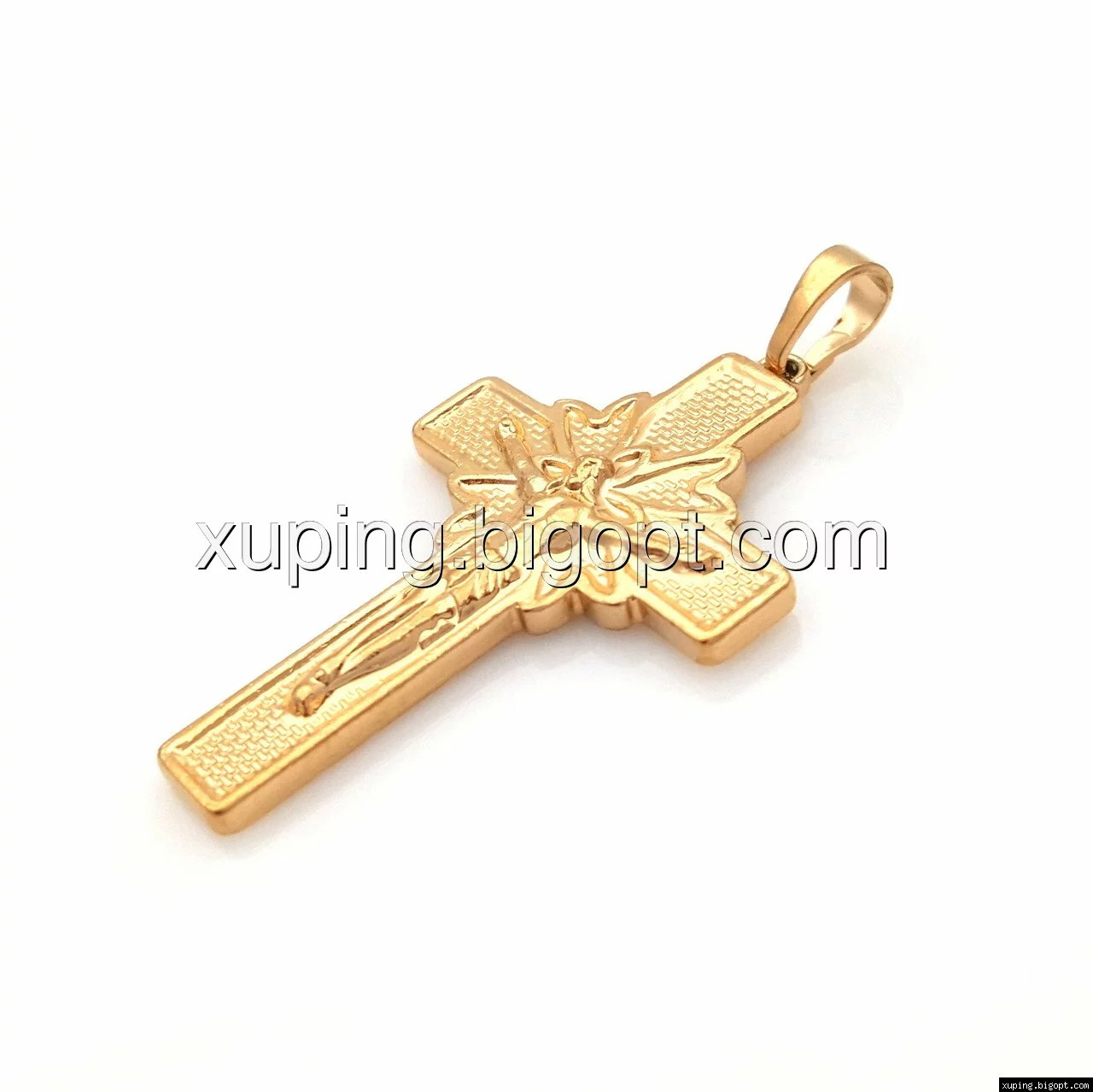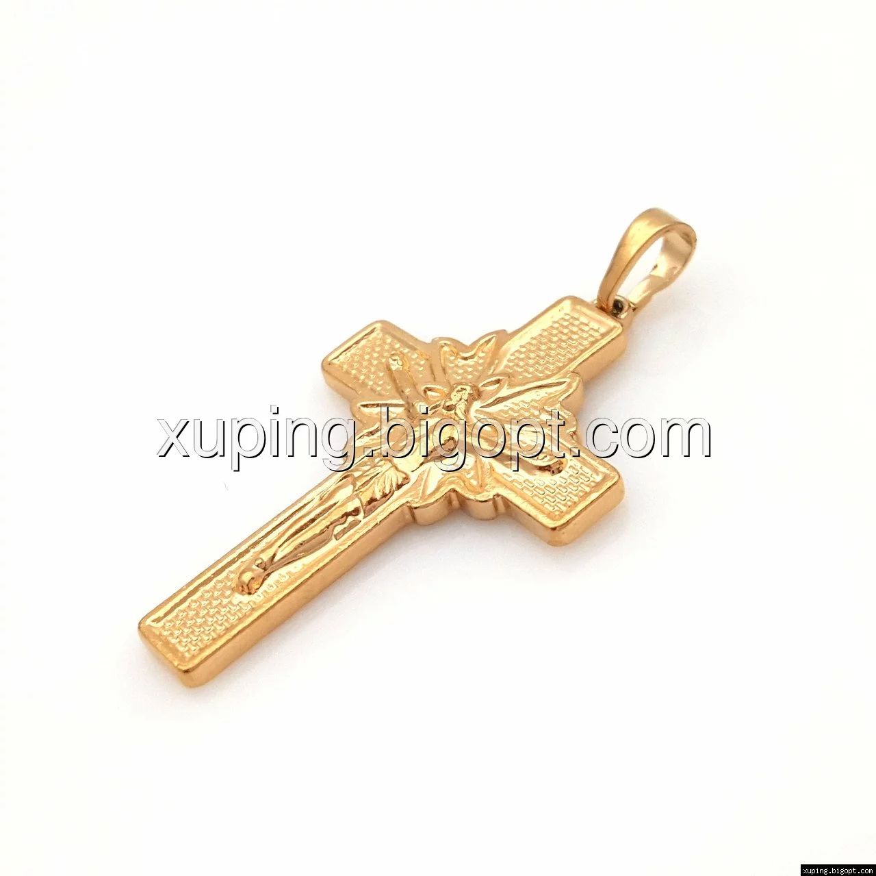 Крестик, с распятием, без камней, позолота