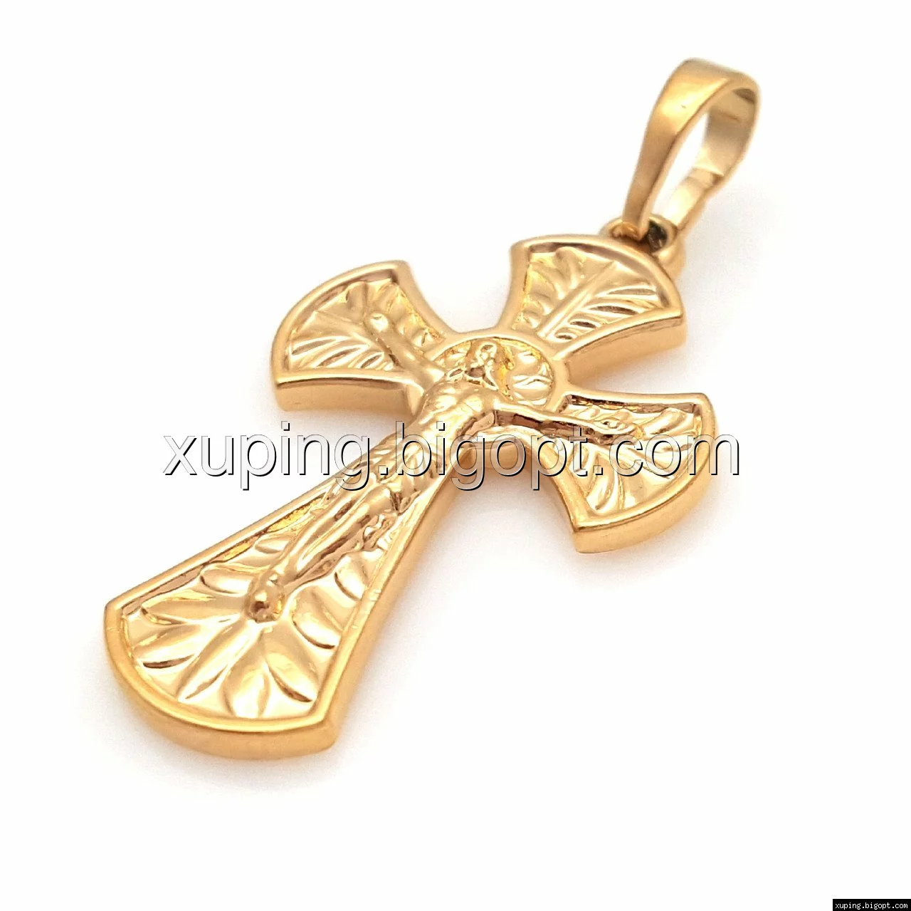 Крестик с распятием Христа, с узором без камней, позолота