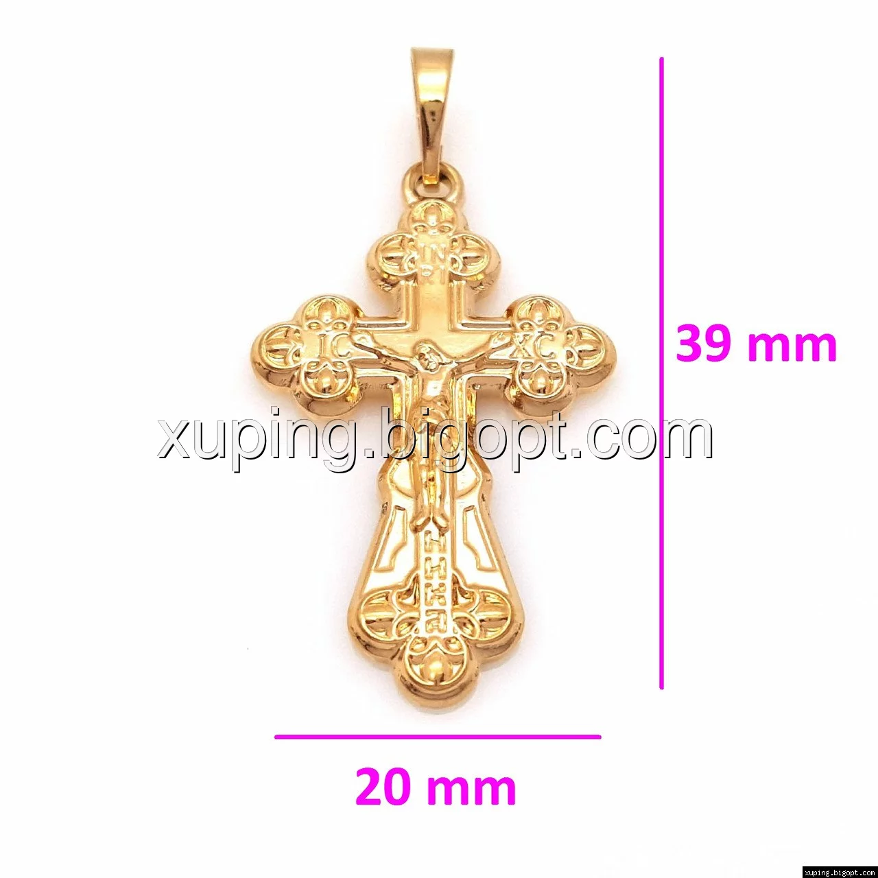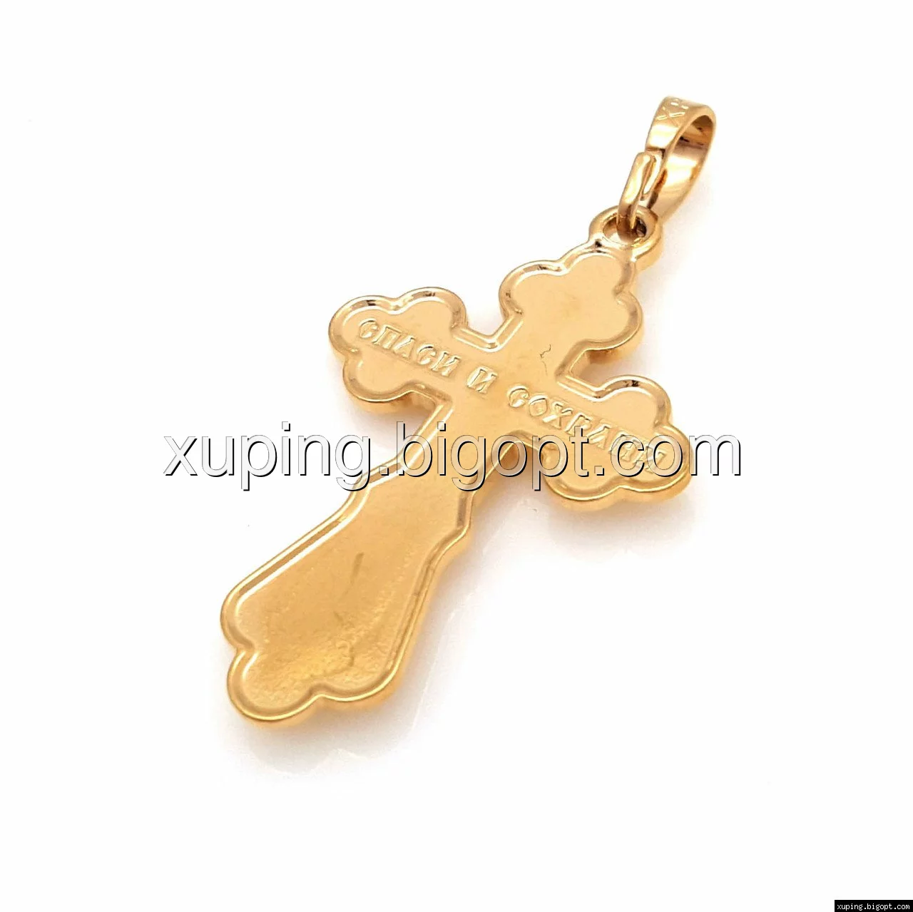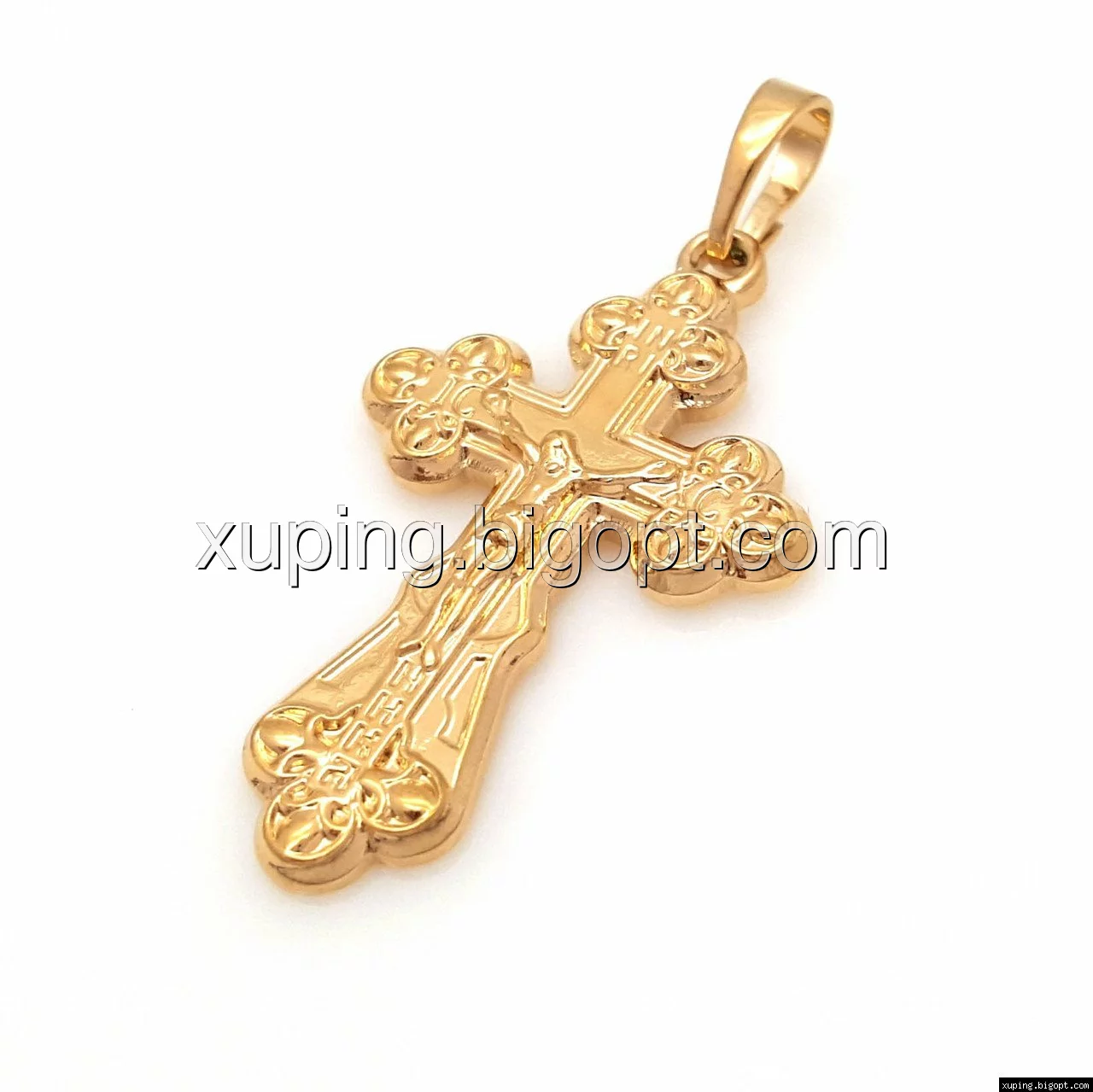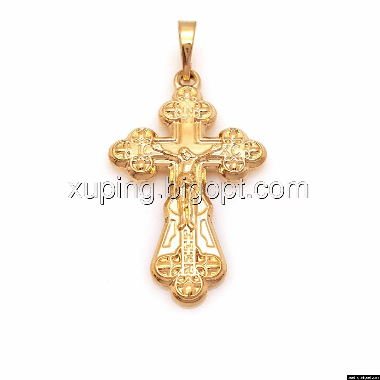 Крестик с распятием и вензелями, позолота Xuping