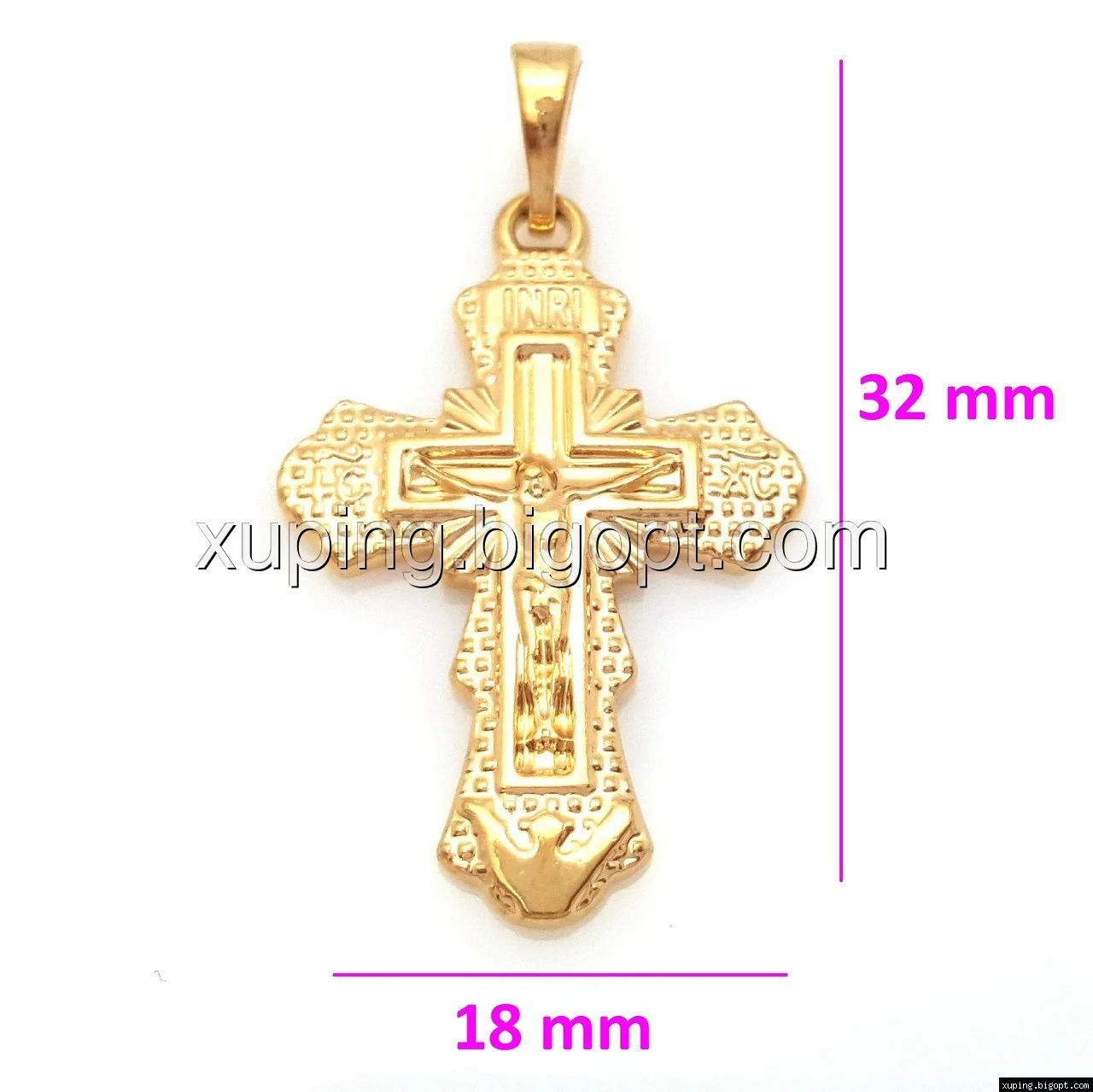 Хрест 751026, Фігурний з розп'яттям і точковим візерунком, позолота Xuping