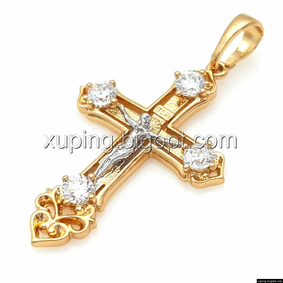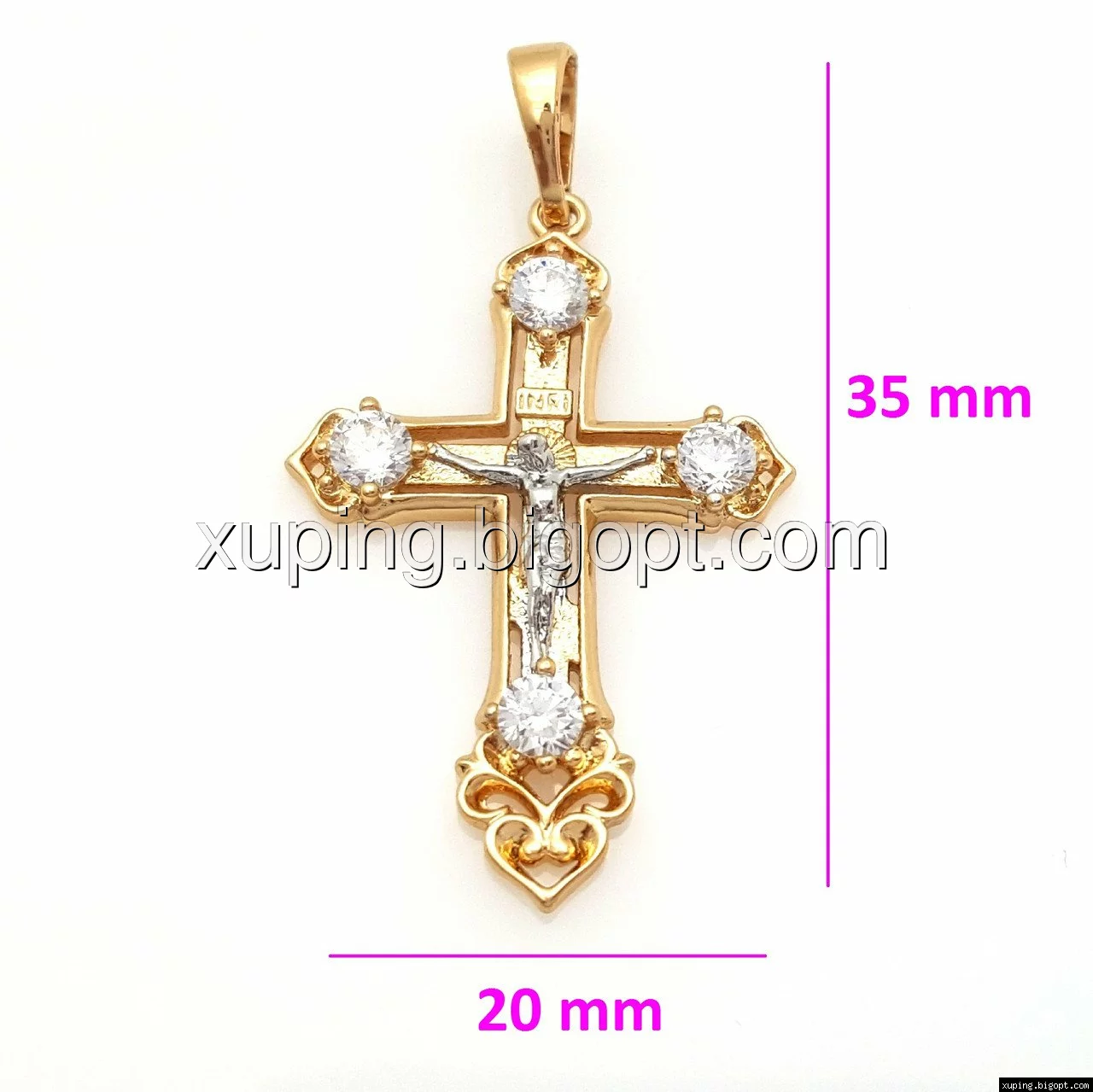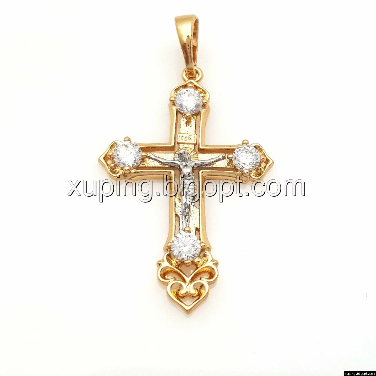 Хрест 751027, з розп'яттям, вставки каменів, позолота+родій