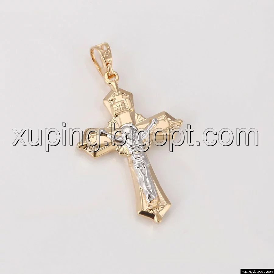 Крест Двусторонний, с распятием, позолота+родий
