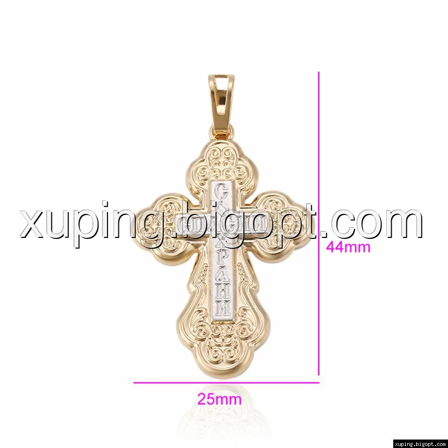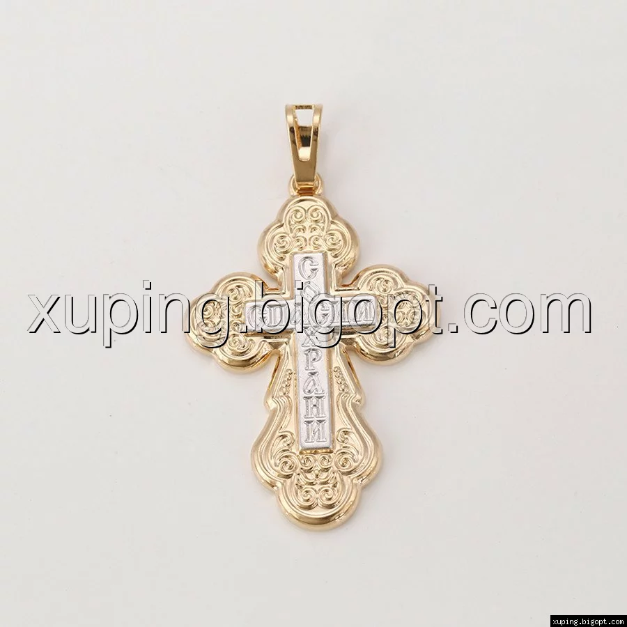 Крест массивный, "Спаси и Сохрани" с узором, позолота+родий