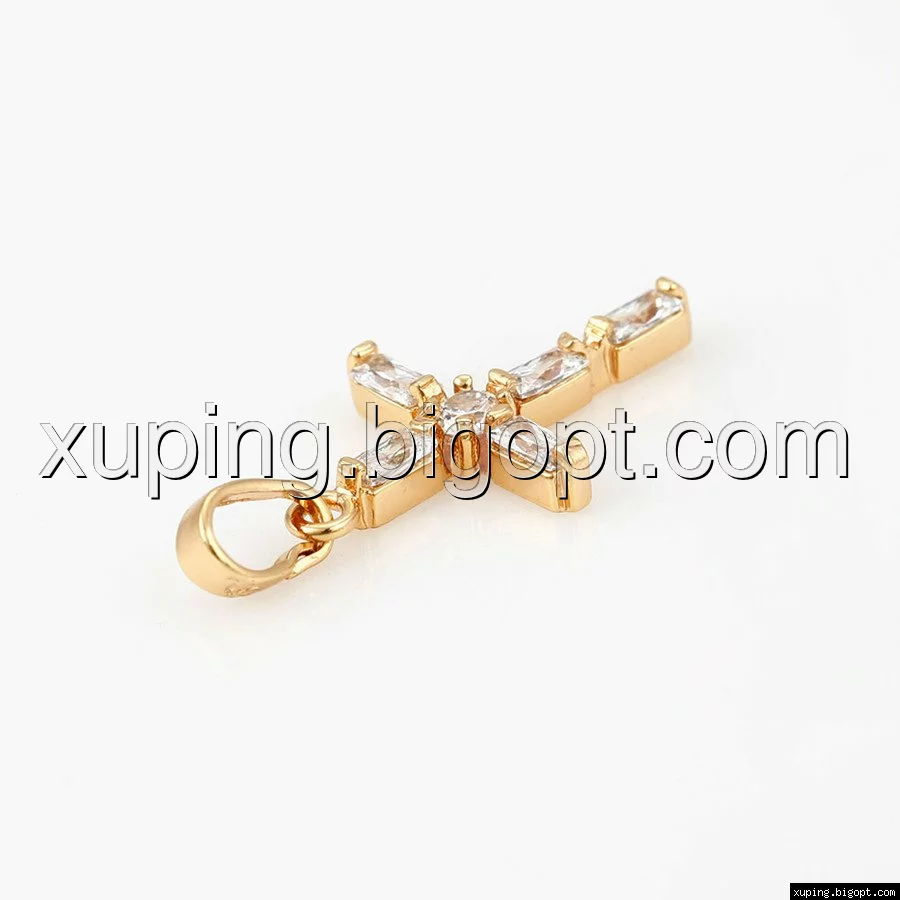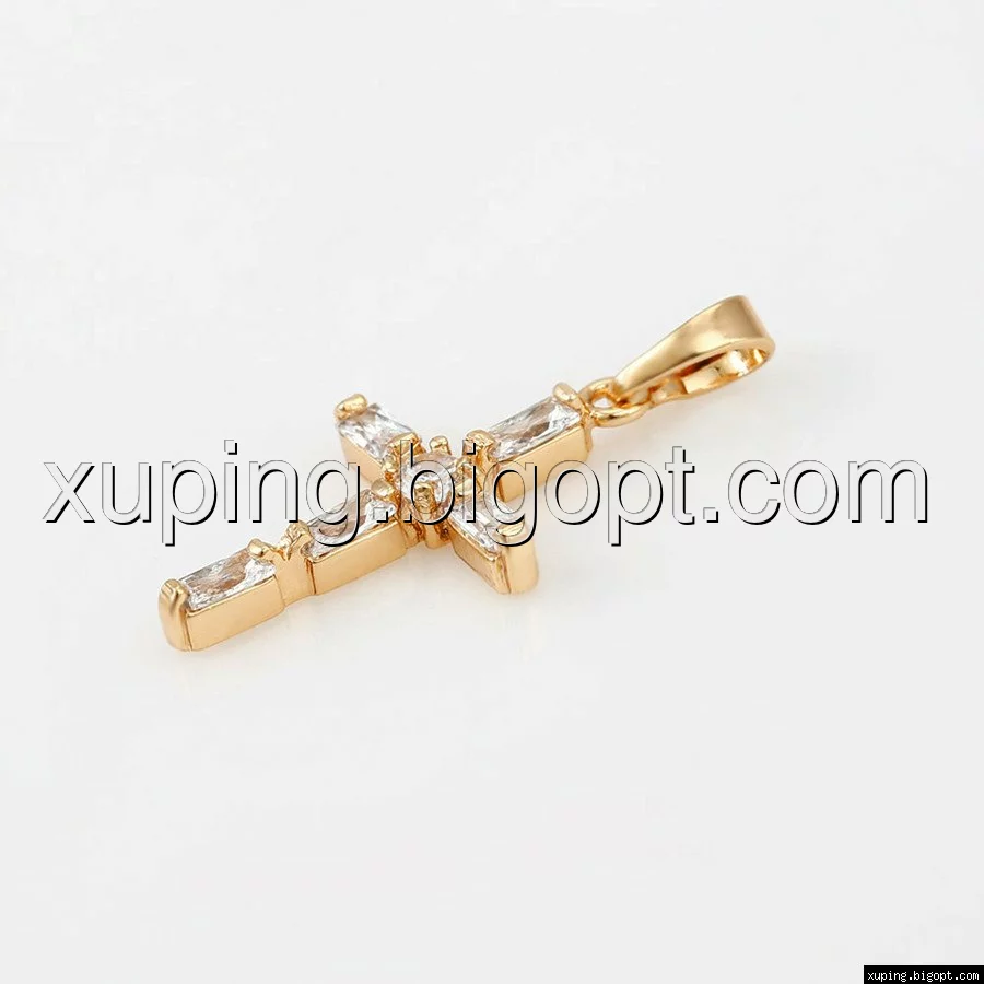 Крест с багетным цирконием, позолота