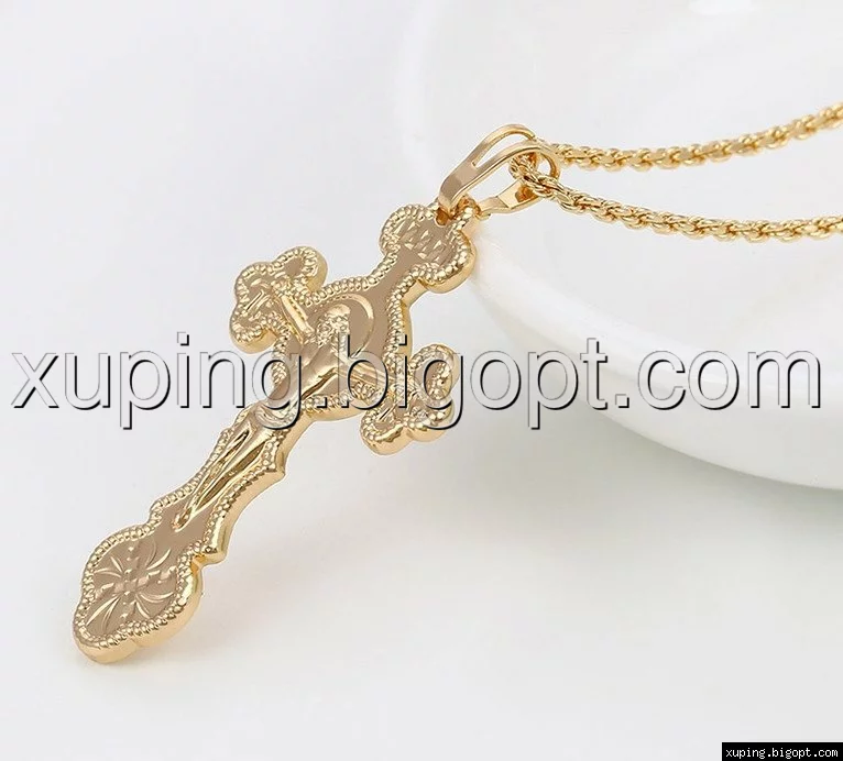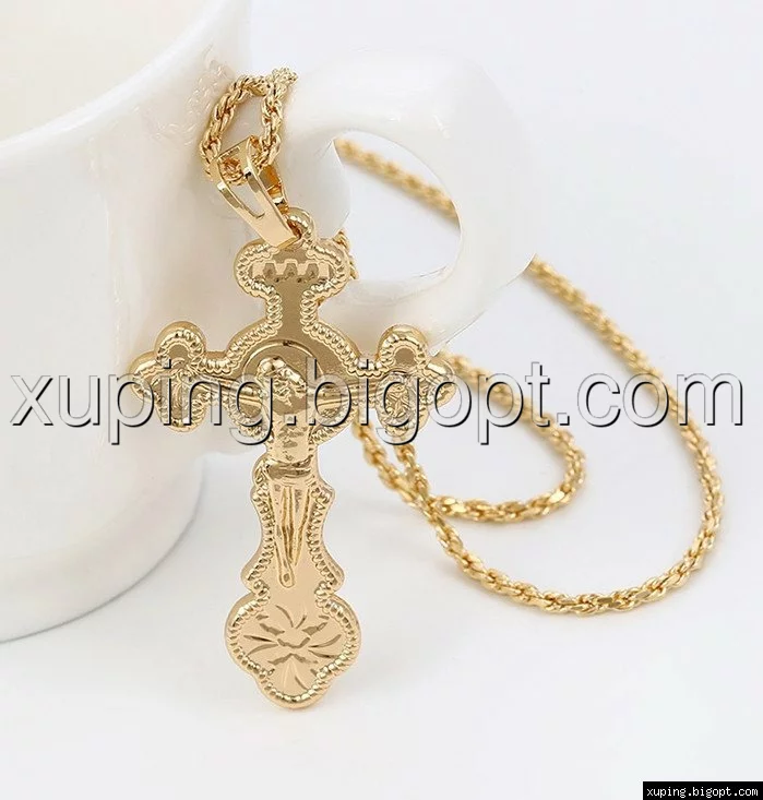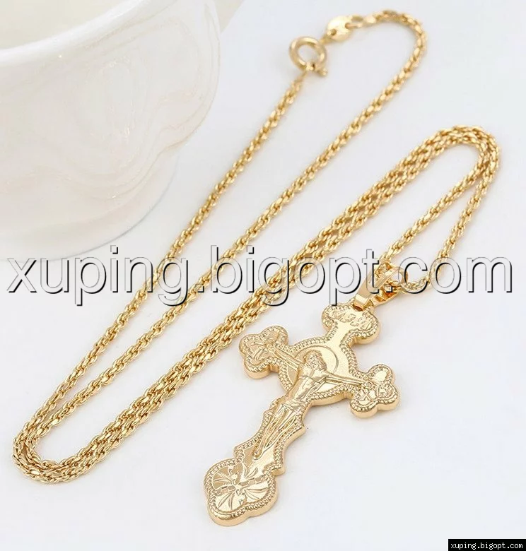 Крест с распятием, без камней, позолота 18 К