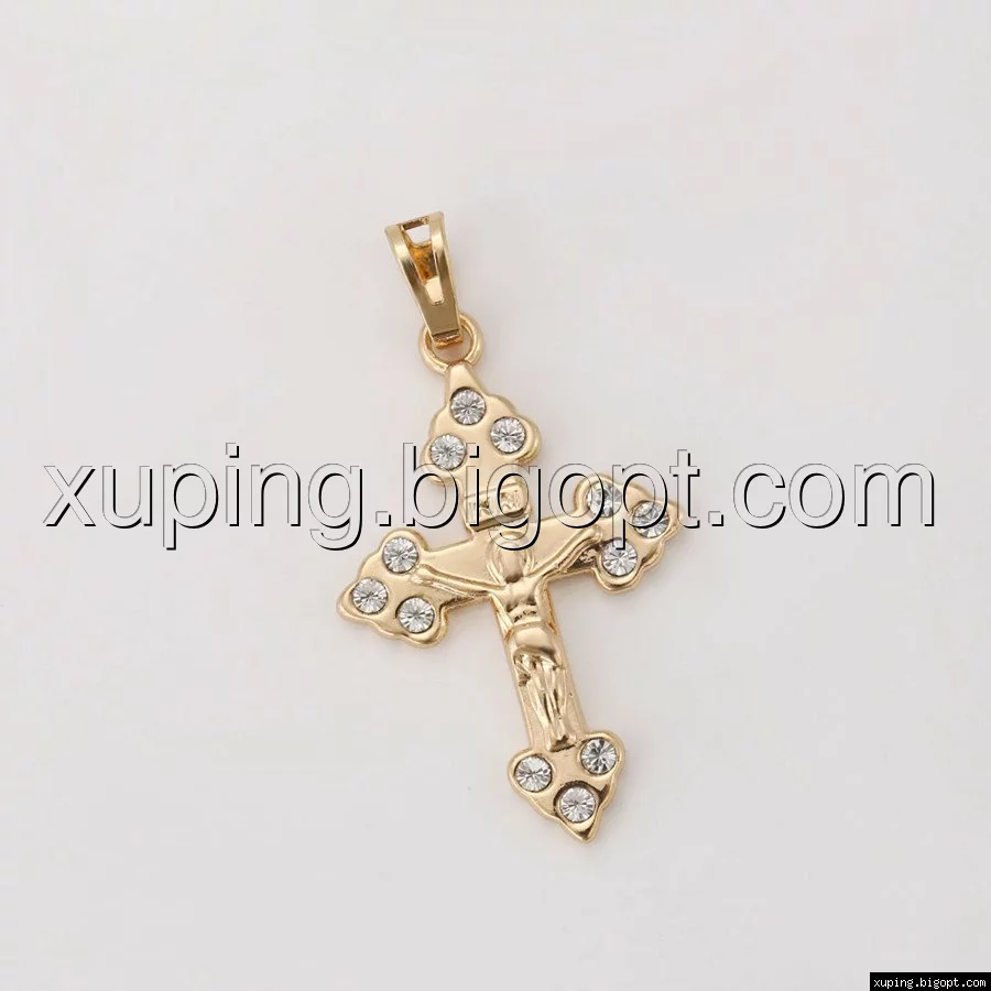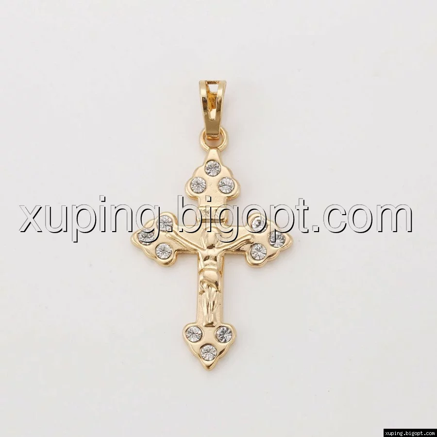Крест с распятием, инкрустация циркония, позолота