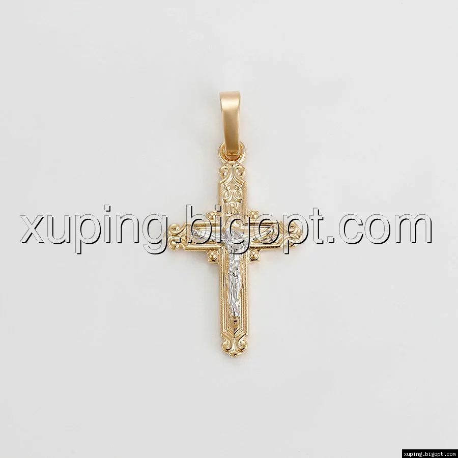 Крест с распятием, позолота+родий